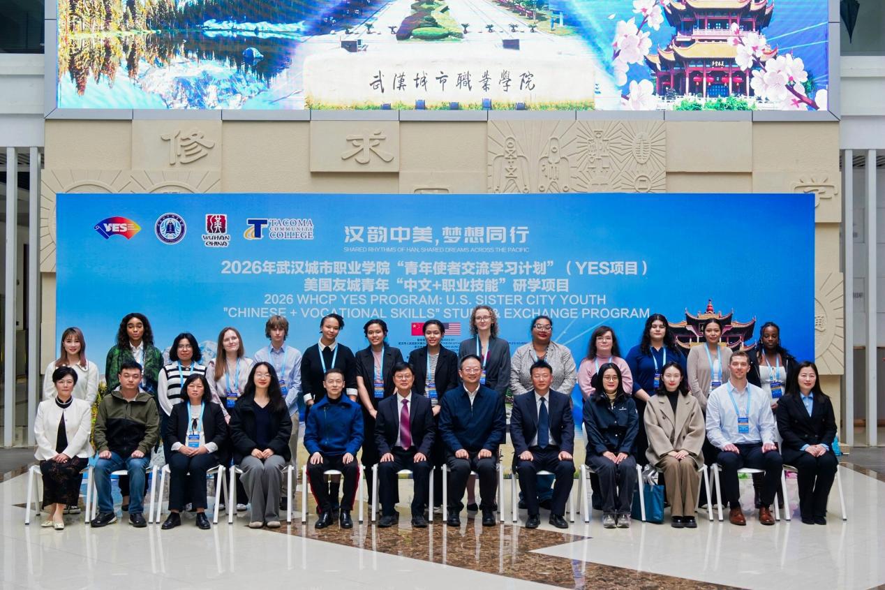 这是武汉城市职业学院首个教育部“青年使者交流学习计划”(YES项目)。恰逢武汉市与美国塔科马市缔结友好交流城市十周年,这场研学之旅为两市十年友谊献上了一份生动的青春贺礼。武汉市人民对外友好协会专职副会长王祥胜,武汉市教育局高等教育处(国际合作与交流处)处长胡忠巍,武汉城市职业学院校长刘永生、副校长杨春松,以及省教育厅、市外办相关负责人,美国塔科马社区学院师生代表等齐聚一堂,共叙中美友谊。