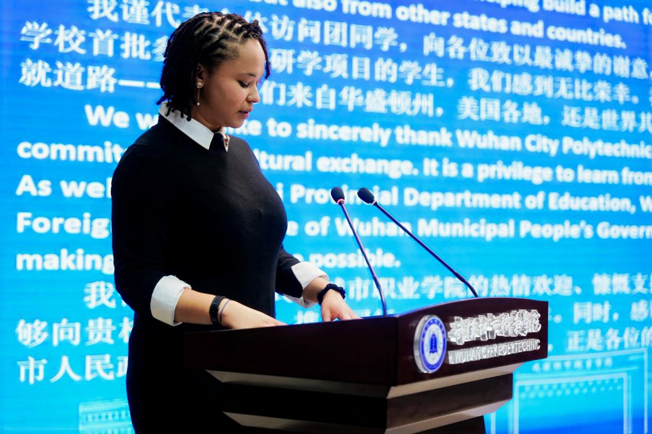 学生代表泰勒·安东尼丝·巴伯(Tayler Antonice BARBER)在发言中表示,期待通过学习中文、体验职业技能、感受荆楚文化,深入了解中国。“我最希望收获的是友谊和文化交流,看到一个新的视角。我想这会是一次改变我对世界看法的旅行。”