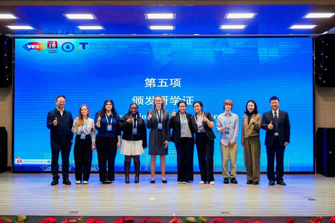 仪式上,省教育厅、市外办、市教育局及武汉城市职业学院领导共同为美国学生颁发研学证书。武汉市人民对外友好协会专职副会长王祥胜指出,中美关系希望在人民,基础在民间,未来在青年,活力在地方。自2016年武汉与塔科马正式缔结友好交流城市关系以来,两市交往合作成果丰硕。他希望美国青年朋友们用心感受武汉的历史底蕴与现代活力,当好中美民间交流的使者。