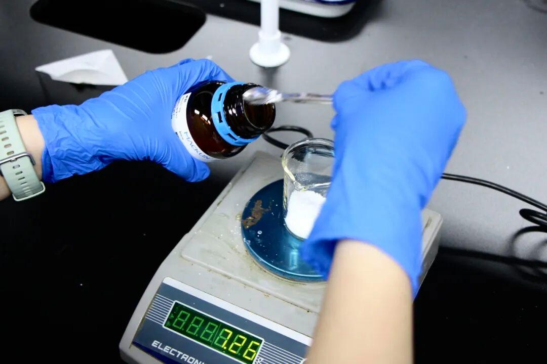 学生需要根据配方精准配比多种成分