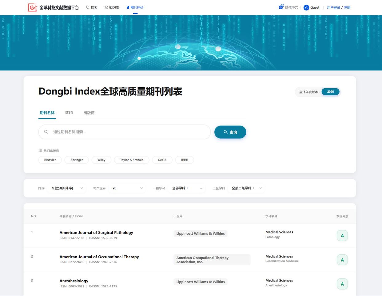 “东壁指数”全球高质量期刊列表已上线,可免费检索下载。(网站截图)