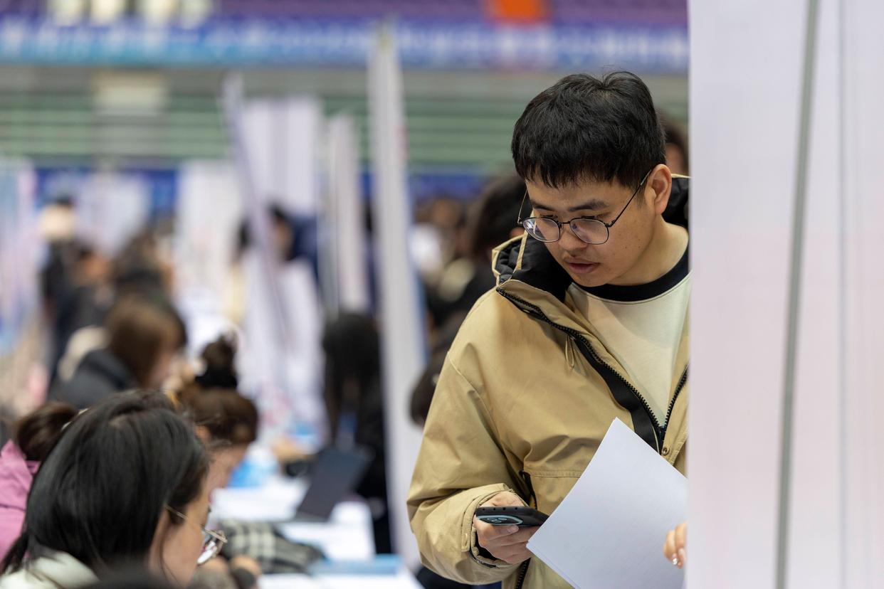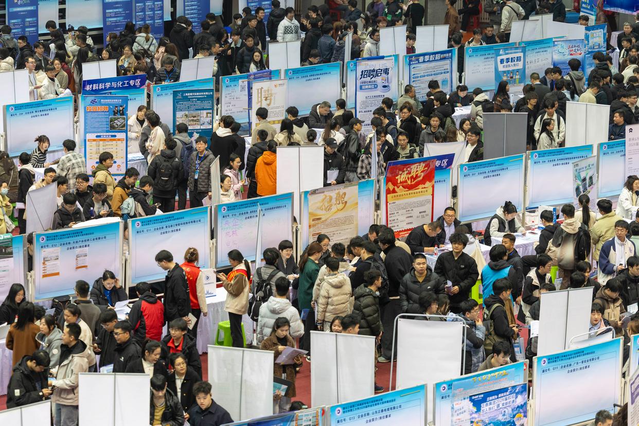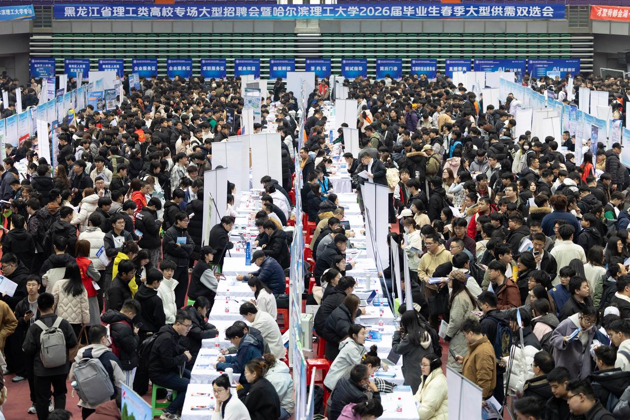 这是3月24日拍摄的黑龙江省理工类高校专场大型招聘会现场。新华社记者 张涛 摄