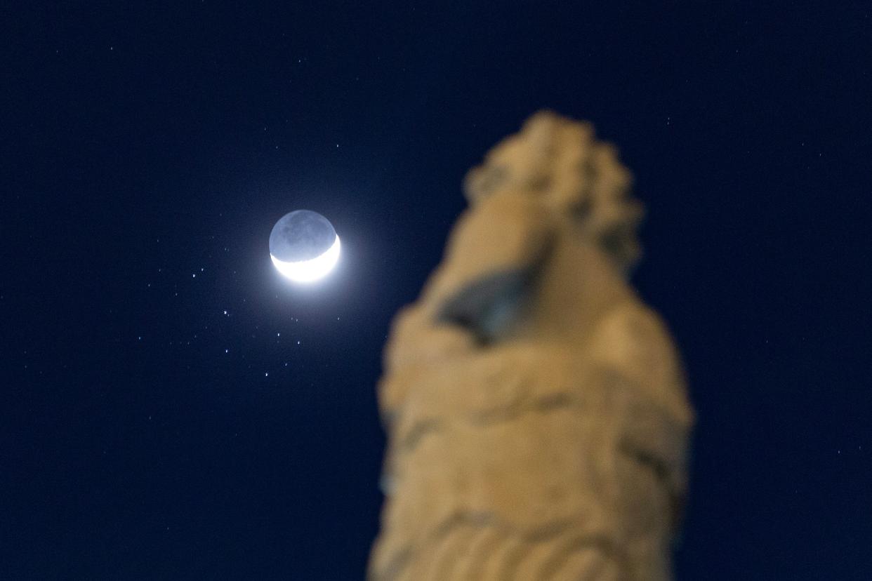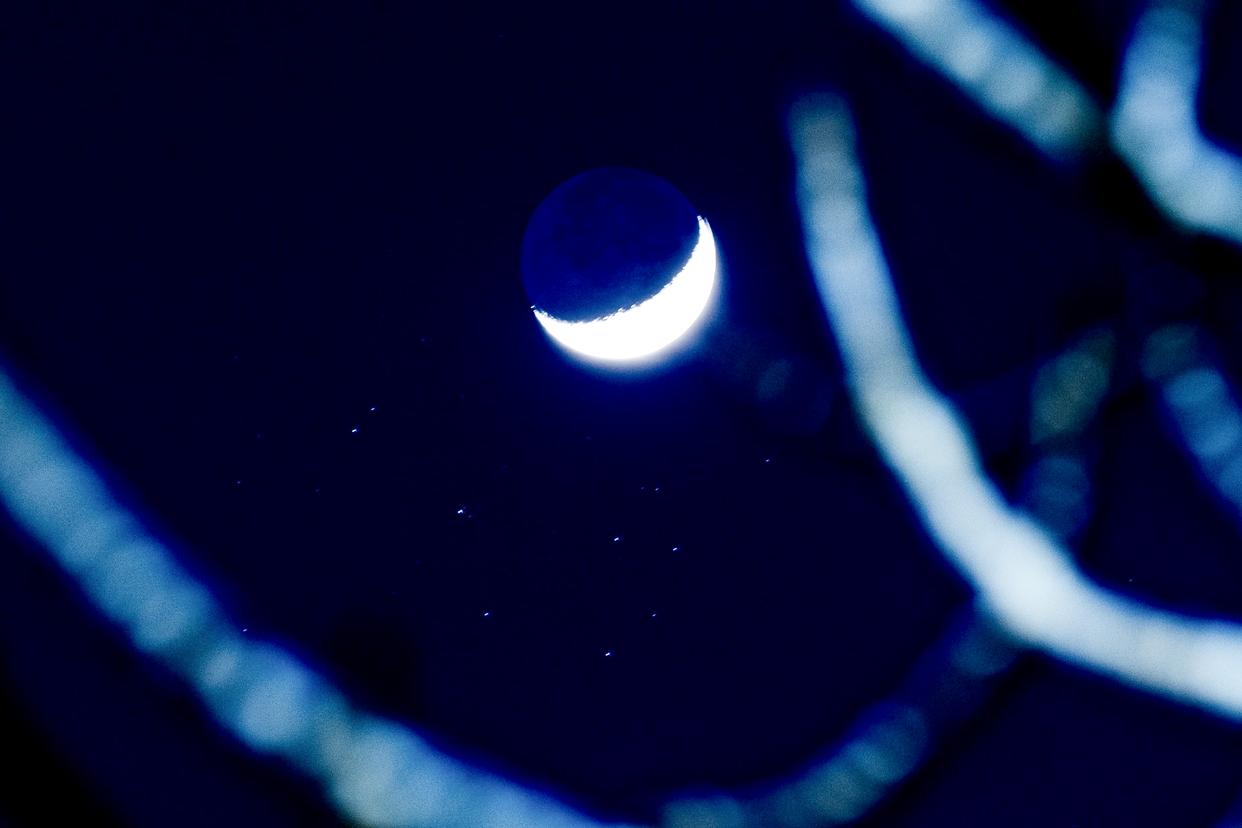 3月23日在黑龙江省富锦市拍摄的“昴星团伴月”景观。新华社发(曲玉宝 摄)