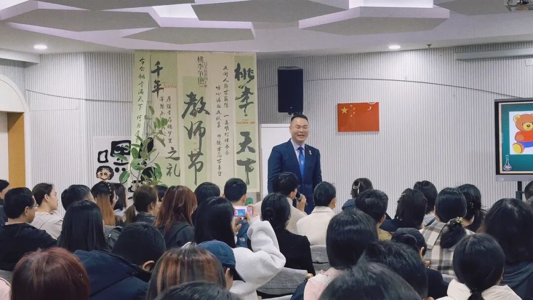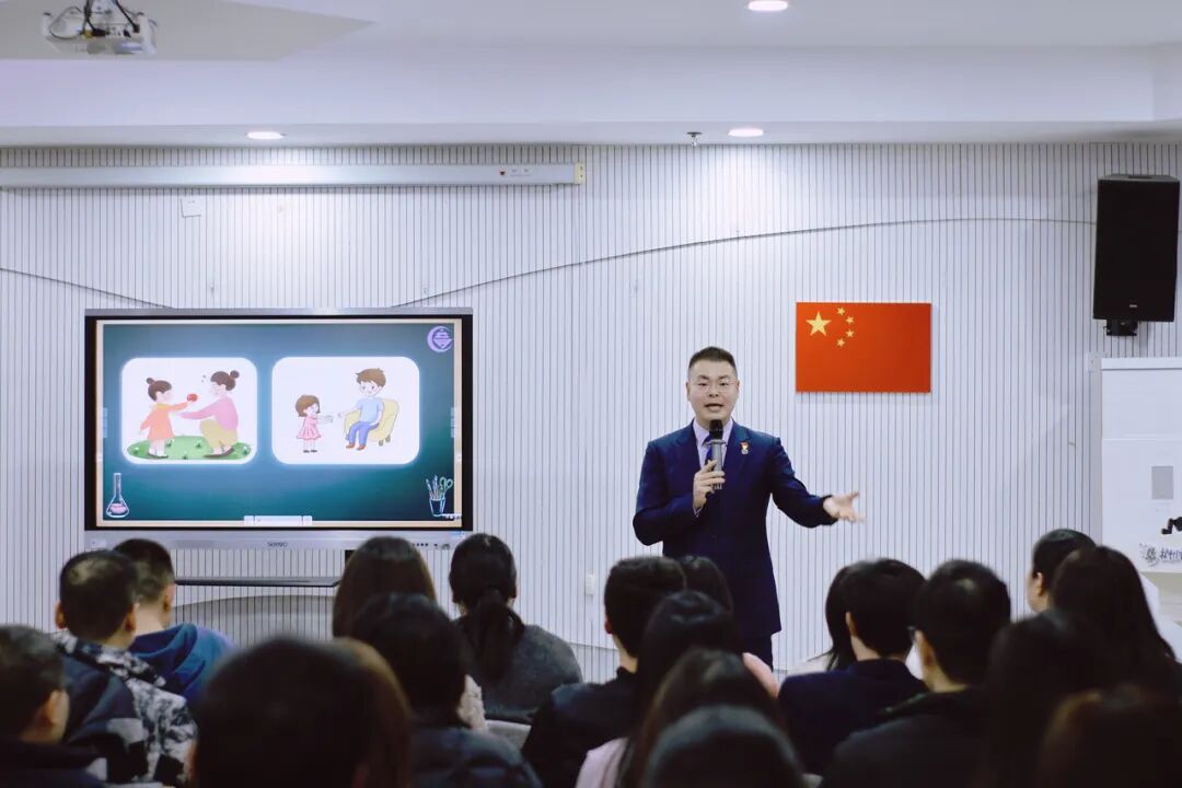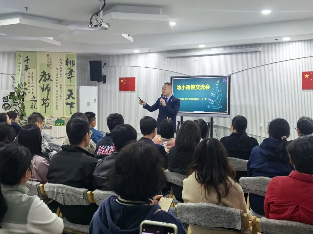 锦绣幼儿园对应的服务区,是育才登云小学的学区,所以这次特别邀请了育才的从辉副校长来举办讲座。从辉以《事半功倍:家庭教育的关键“三抓”》为主题,为家长们解开幼小衔接的焦虑密码。