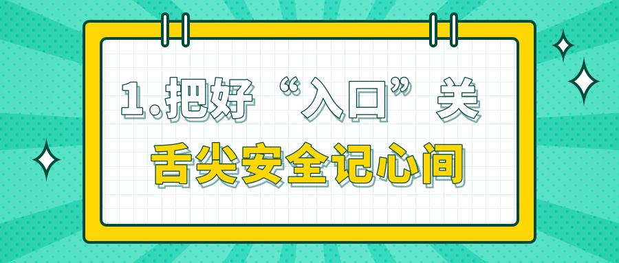 饭前便后认真洗手,不与同学共用餐具、水杯。远离高油高糖高盐的零食。就餐或饮水后若出现腹痛、呕吐、腹泻等不适,第一时间告知老师并及时就医。