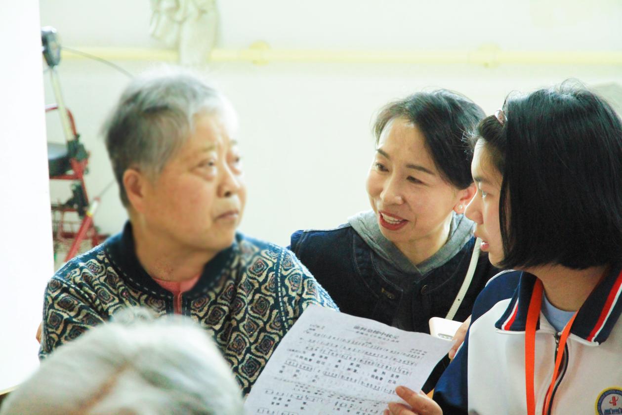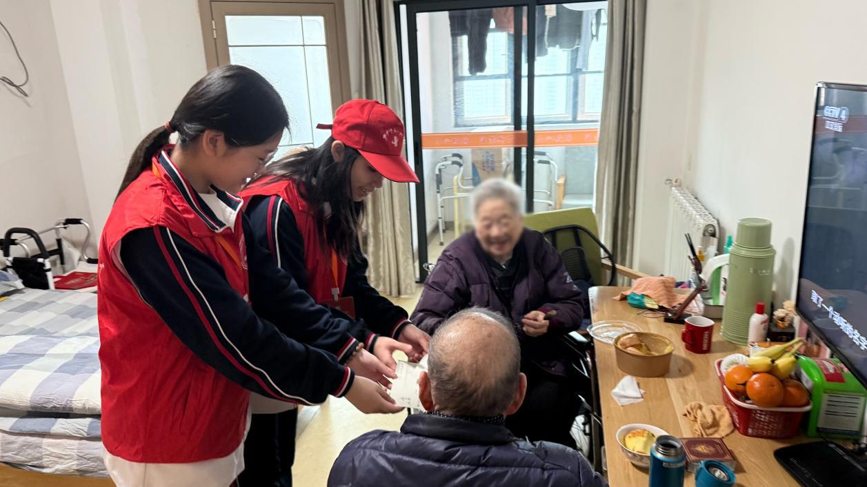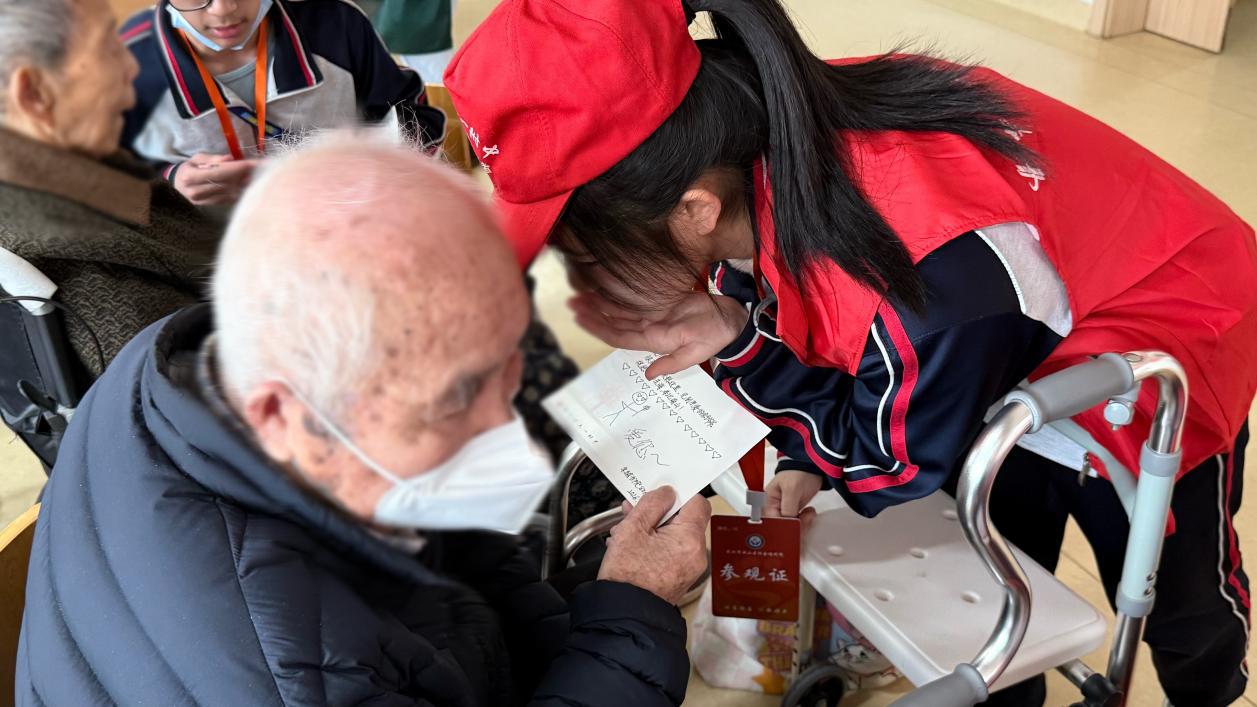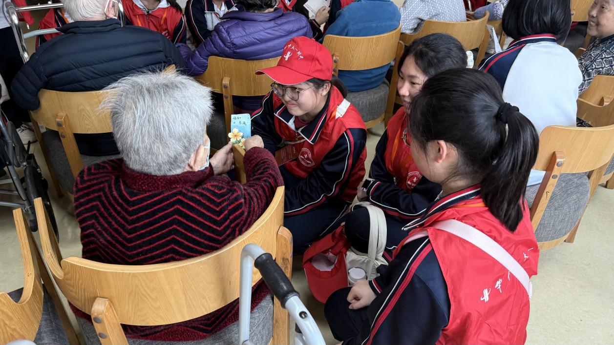 志愿者初二6班叶宇泽同学表示收获满满,“我印象最深的是陪一位当过兵的爷爷聊天。他讲起年轻时开军车的故事,眼睛亮亮的,让我看到了他们的热血年代。老人们需要的不是物质上的赠予,而是心灵情感上的陪伴和倾听。”志愿者高二6班杨沁颖同学表示,“我陪着爷爷奶奶们聊天谈心,耐心倾听他们的过往,为他们送上亲手书写的贺卡。这次活动让我懂得了感恩与责任,也明白平凡的陪伴能带来大大的温暖。”