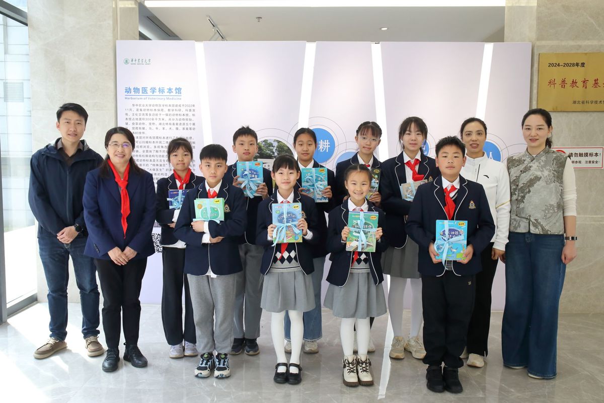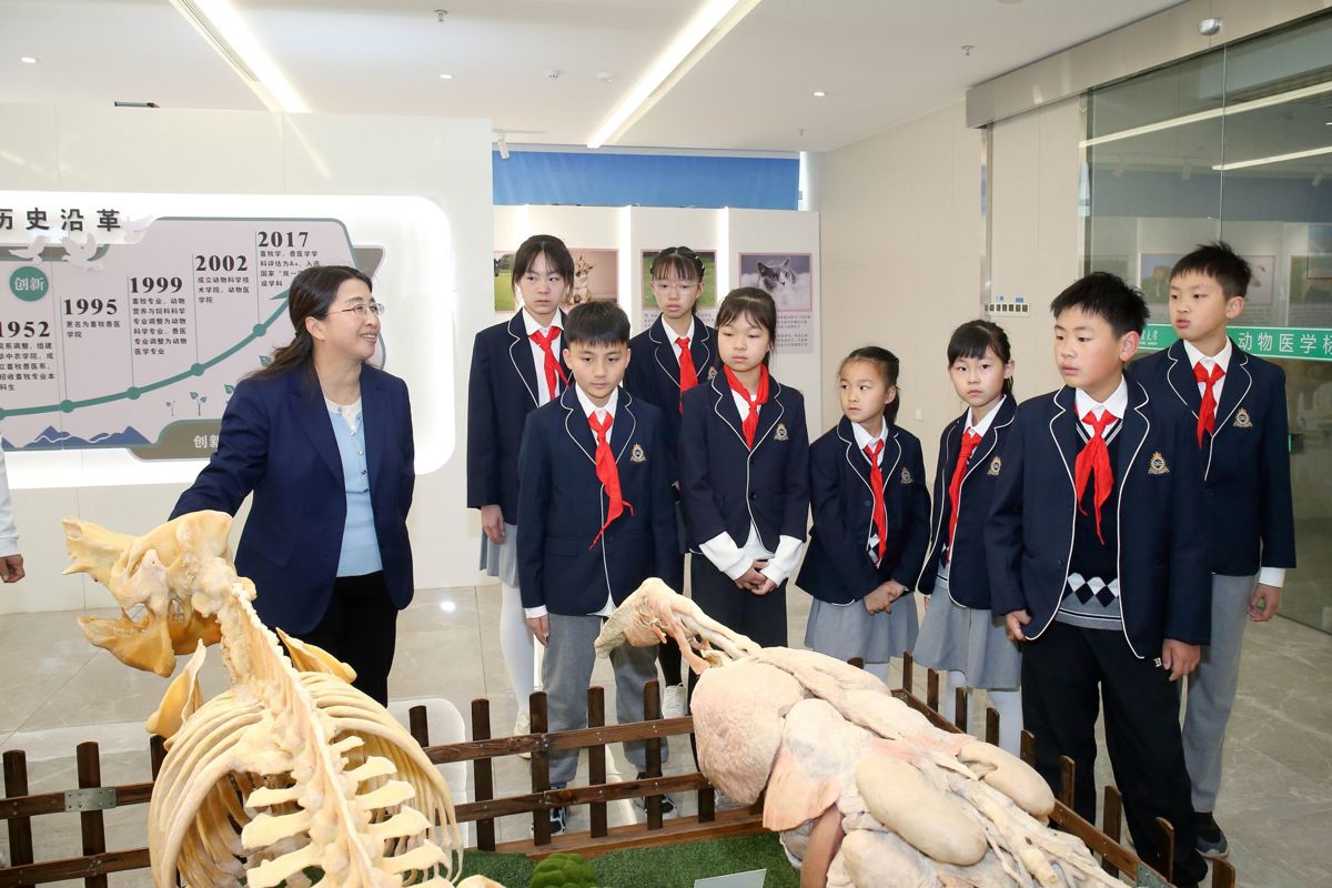 3月29日上午,华中农业大学附属学校少先队员走进动物标本馆,开展“红领巾寻访”活动。在附属学校校长余敏、大队辅导员张志燕的带领下,少先队员们与中国工程院院士赵书红教授面对面交流,聆听科研故事,感悟初心使命,探寻守护百姓“肉盘子”的种业奥秘。
