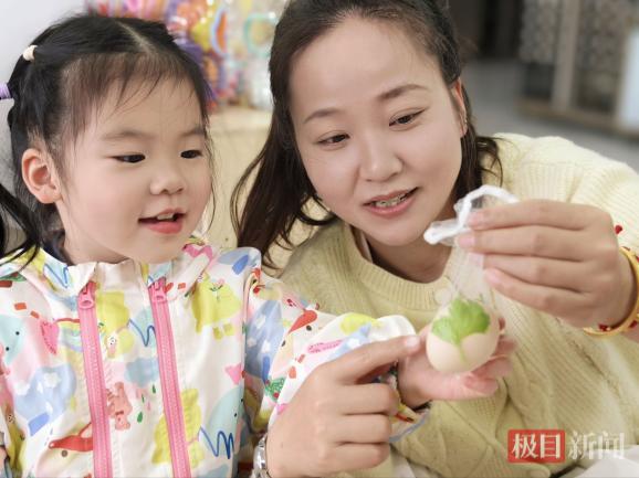 播种的快乐,从田间延伸到了课堂。小班的孩子们成了“追颜色的小侦探”,用叶片贴在蛋上,煮出一枚枚印着叶脉花纹的花草蛋;中班的孩子们变身“藏叶子的小匠人”,将花瓣和叶子压进黏土,定格春天的脉络;大班的孩子们则当起“尝福袋的小厨神”,用春季时令蔬菜包成一个个小福袋,一口咬下去——“春天,是脆脆的、甜甜的!”