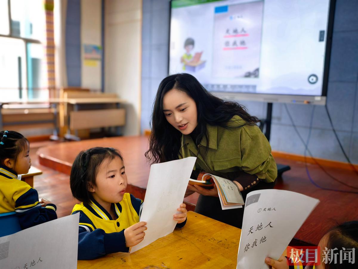 青教志愿队副队长、白玉山中学张磊老师全程默契配合,及时分发汉字卡片,轻声鼓励孩子们大胆发言、积极互动。课堂上,孩子们听得格外专注,纷纷举手分享自己的发现:“天上有云”“地上有小草”“我和小伙伴都是可爱的‘人’”,稚嫩的话语充满童真。邵老师逐一给予肯定,笑着回应:“观察得真仔细,表达得也特别棒,你们都是爱思考、敢表达的小宝贝,上小学一定会很优秀!”诵读环节中,孩子们跟着邵老师的节奏大声朗读,清脆的声音回荡在活动室内,在琅琅书声中感受语言文字的韵律之美,氛围轻松又热烈。