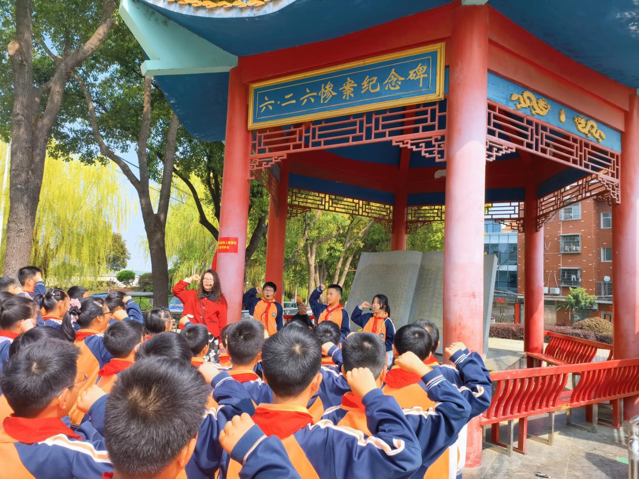 在仓埠街,仓埠中学、周铺小学等多校师生齐聚林家大湾反抗日寇暴行纪念碑前,缅怀抗日先烈与无辜同胞。祭扫结束后,各校迅速开展主题班会、红色观影、英烈家书诵读、手抄报制作等活动,引导学生沉淀感悟,深化对英烈精神的理解,将爱国之情转化为奋进之力。