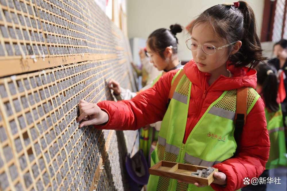 ↑4月4日,在山东省临沂市沂南县竹泉村时光印记活字印刷体验馆,孩子们参加研学活动。新华社发(王彦冰摄)