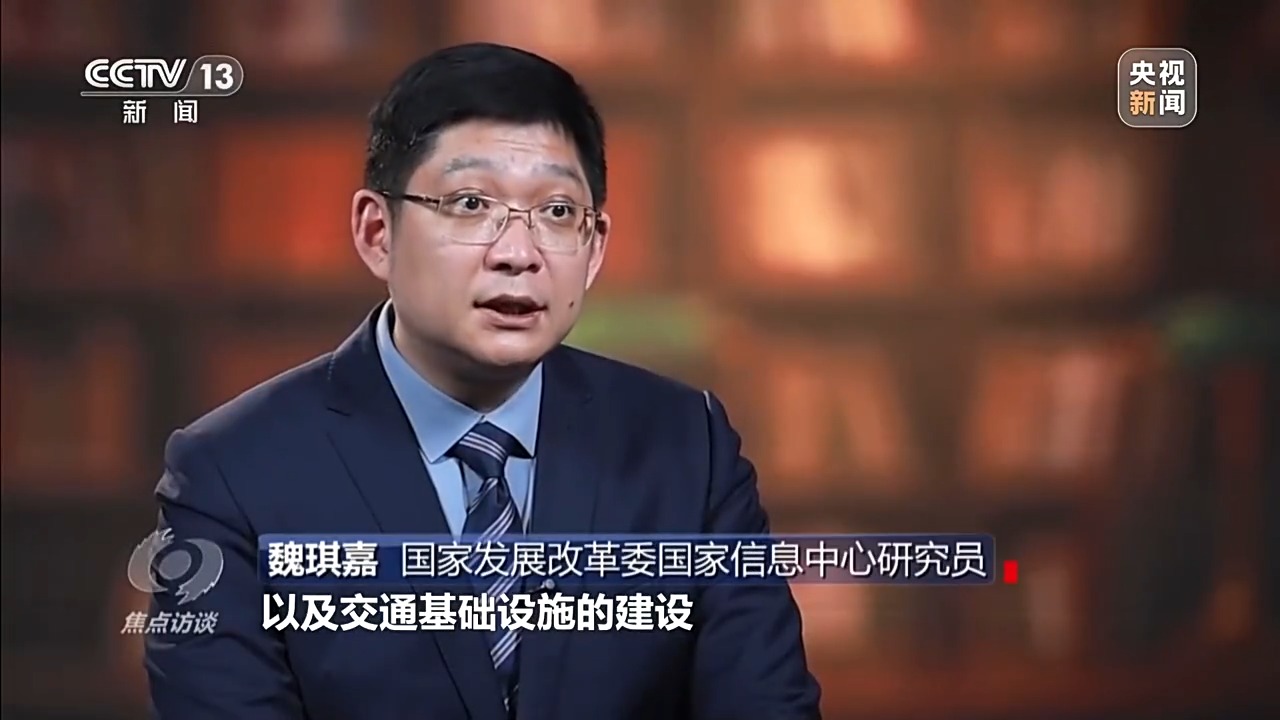 国家发展改革委国家信息中心研究员 魏琪嘉:能源基础设施的建设以及交通基础设施建设,这两方面体现了对经济发展基础性的作用。比如能源的韧性,通过这些新能源基地,重大水电及水风光一体化基地建设,一方面能够提升绿色低碳发展水平,另一方面对节能降碳,实现“双碳”目标起到了重要的推动作用。
