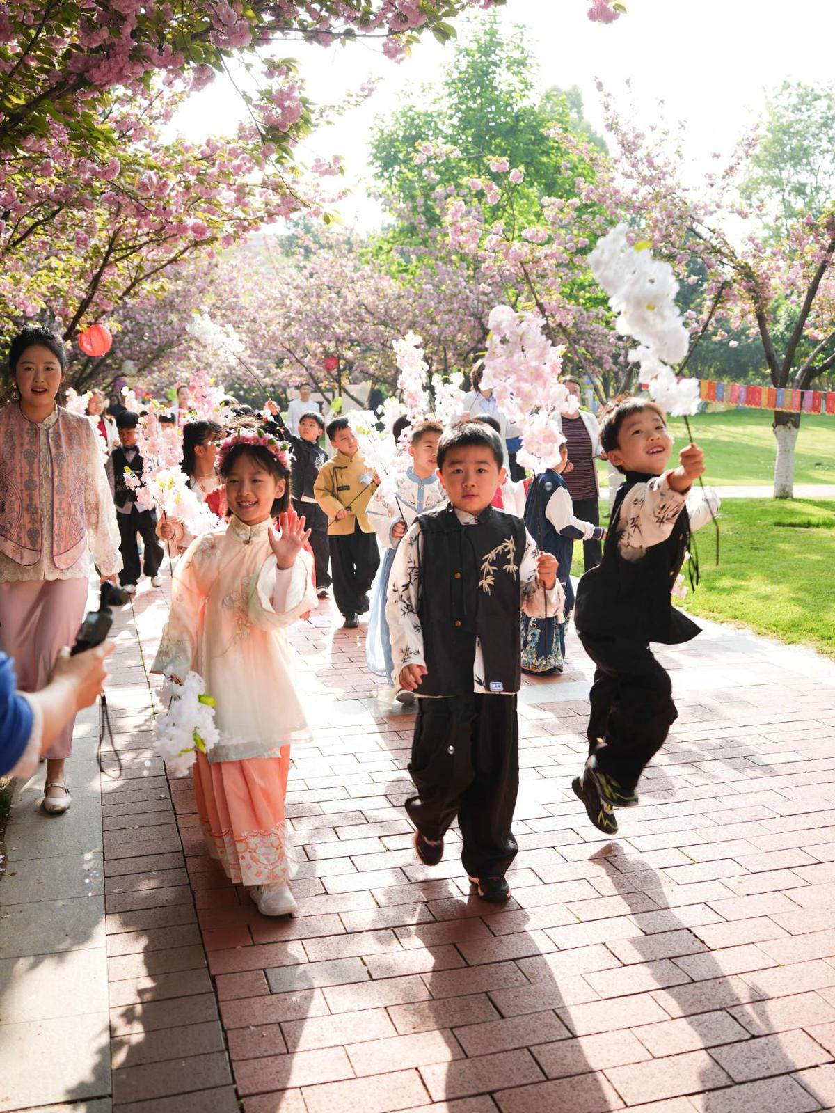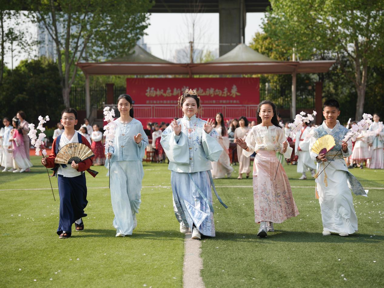 以樱为约,向美而行。4月7日,武汉海淀外国语小学部一年一度的樱花节如期启幕,借樱花盛景,融六艺课程于日常德育之中,让孩子们在和煦春光里亲近自然、携手成长,让美好童年在繁花中绽放。