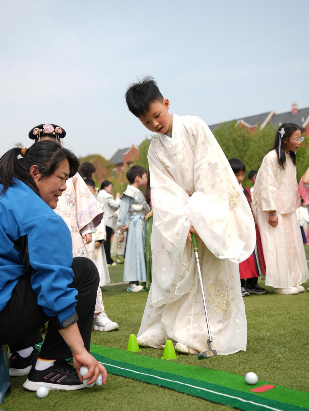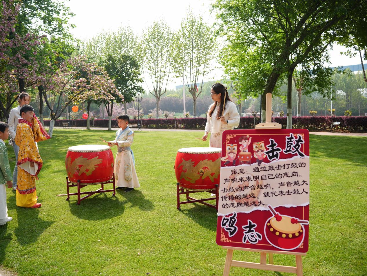 趣味满径,雅韵相伴。樱乐风华击鼓闯关、花钿映春巧手拈樱、诗境雅趣文创手作,一个个特色摊位错落有致,让孩子们在动手实践中邂逅国风浪漫。滚铁环、投壶、套圈圈、锤丸、蹴鞠、抓石子,一系列复古民俗游戏轮番上演,欢声笑语中,唤醒童年最纯粹的快乐与热爱。