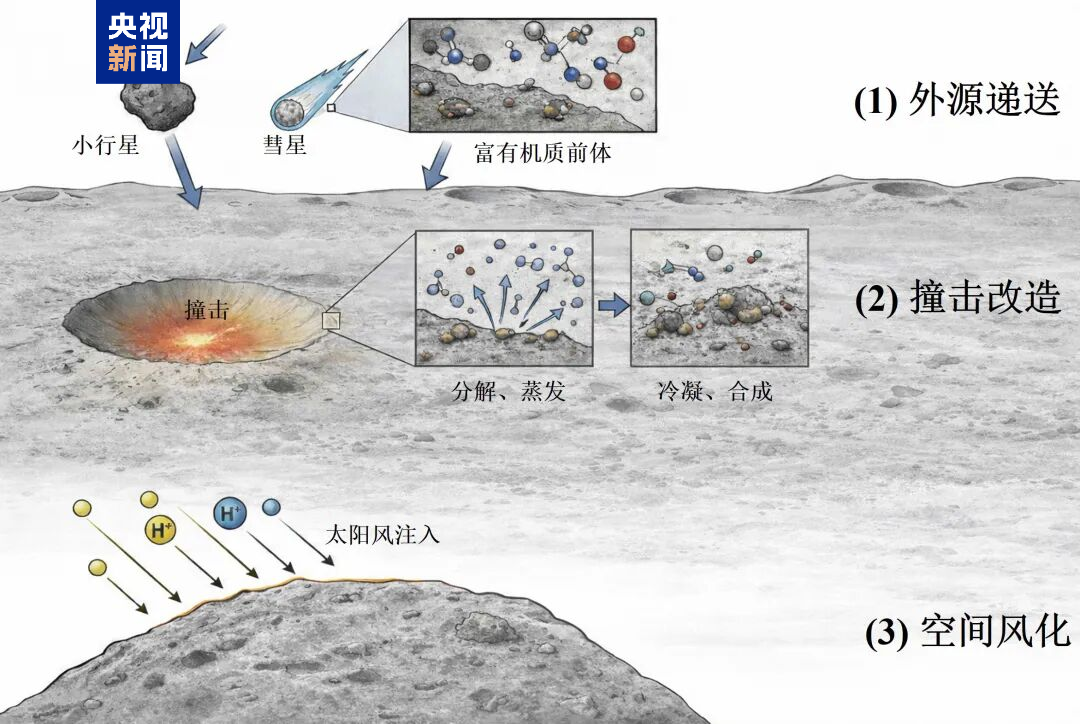 △月壤中有机质形成和演化示意图