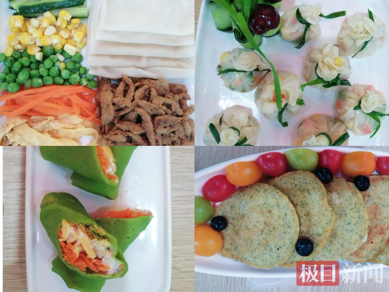 活动伊始,炊事员岗位练兵火热拉开帷幕。紧扣“春日”核心主题,将各类新鲜时令春菜融入菜品创作,严格恪守生熟分开、荤素分离的操作规范,用心打造兼具颜值与营养的幼儿美食。用菠菜、胡萝卜等天然春菜榨取汁水,精心调制出嫩绿、金黄的彩色春饼皮,搭配清爽可口的时令配菜,一道道软糯易消化、颜值出众的创意春味菜肴陆续亮相,充分展现了扎实的烹饪功底与专业素养。现场,小班袁钰珂爸爸忍不住称赞:“幼儿园在孩子饮食上既用心又讲究,这果蔬做饼皮的妙招,回家我也学着做给孩子吃。”