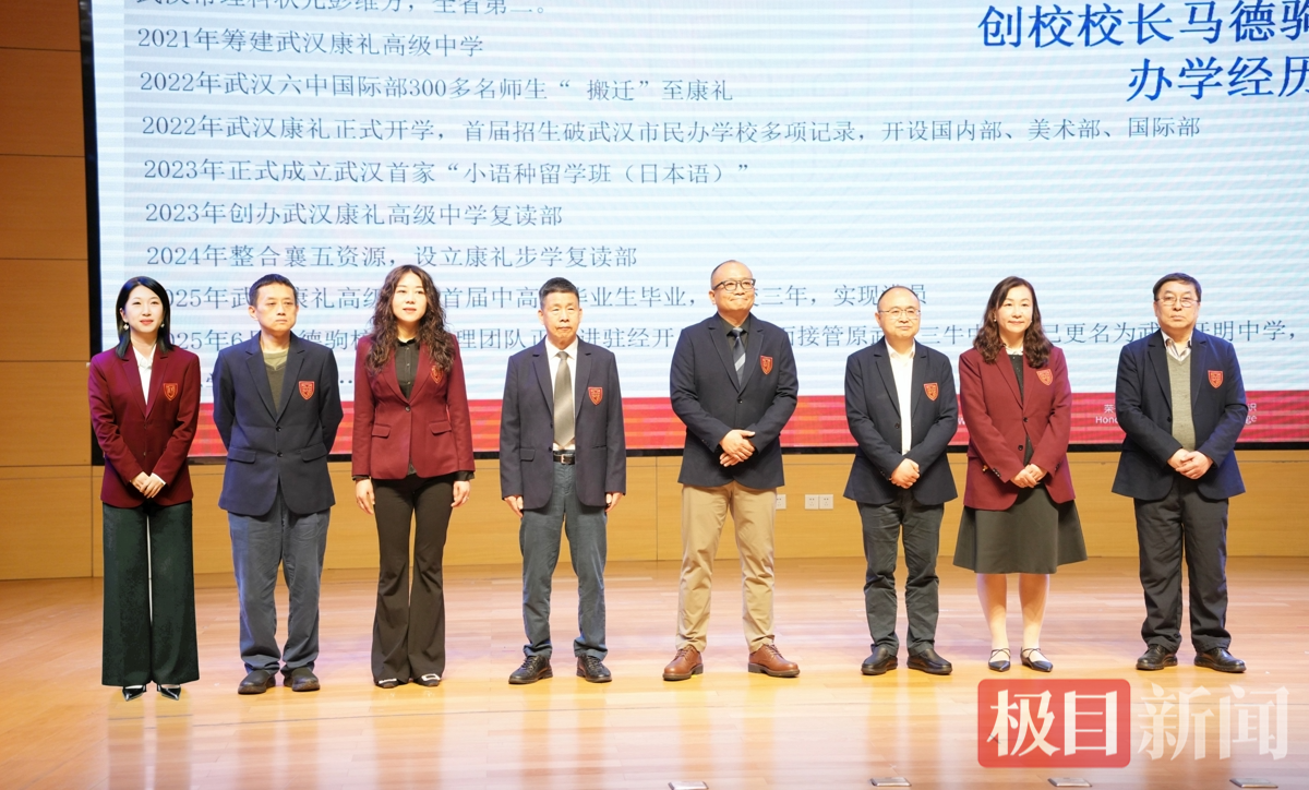 以原武汉六中校长、国务院政府特殊津贴专家、数学特级教师、全国教育系统劳动模范马德驹为核心的校长管理团队首次公开正式亮相,并正式发布贯通“国内中高考+国际升学”的双通道课程体系。