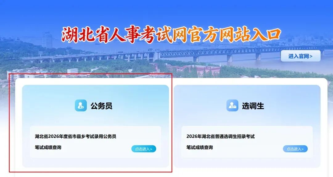 湖北省2026年度省市县乡考试录用公务员笔试成绩已在湖北省人事考试网“成绩查询”栏目发布,成绩查询系统将在考录的相关工作结束后关闭,请考生提前下载、打印、保存本人成绩查询单。根据《湖北省2026年度省市县乡考试录用公务员报考指南》第二章第二条第九项内容,公务员笔试阅卷采用客观题机器评卷和主观题网络评卷,没有人工登分、加分过程,除零分和缺考情况外,不接受考生查分申请。