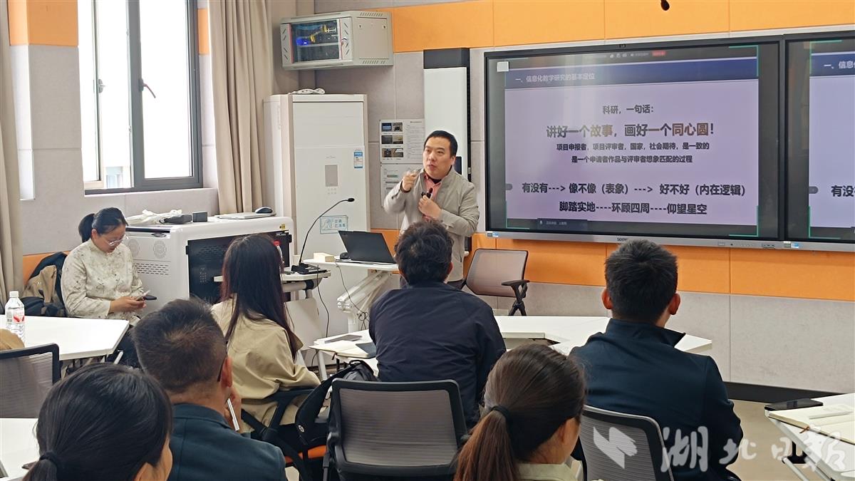 湖北日报讯(记者韩晓玲、通讯员邵俊泉)4月13日,华中师范大学人工智能教育学部教授、博士生导师上超望走进湖北经济学院,为教师们带来一场题为《生成式人工智能赋能教师开展高质量课题研究实操》的讲座。在传授新技术的同时,他郑重地告诉大家:“说到底,AI再厉害,也没有办法弥补学术素养的缺乏。”