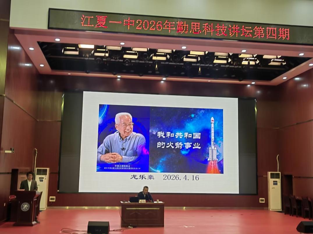 为弘扬航天精神、厚植家国情怀,推进科技高中建设,4月16日,中国工程院院士、长征系列火箭总设计师龙乐豪研究员走进武汉市江夏区第一中学,为师生带来一场题为《中国火箭与航天》的精彩报告。活动反响热烈,极大鼓舞了在场学子探索科学、报效祖国的热情。