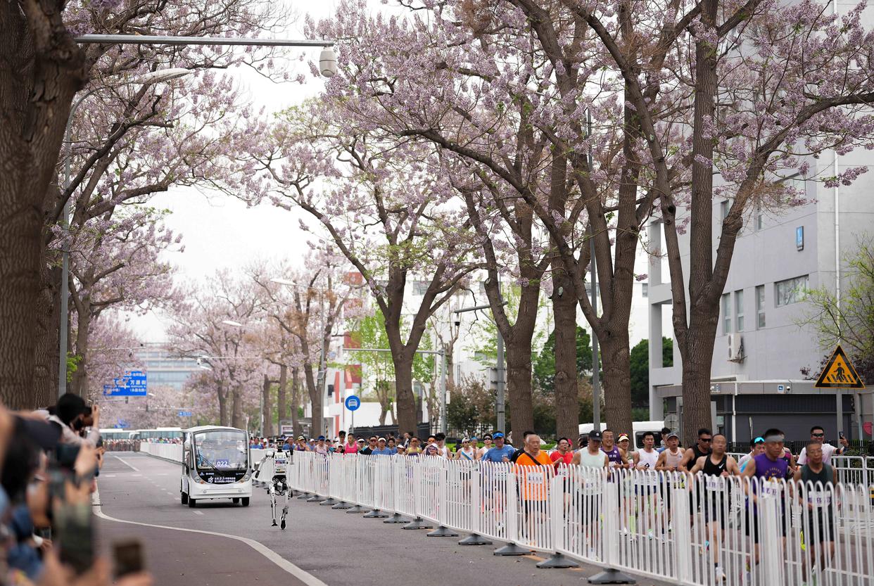 此次比赛中,有一幕令人印象深刻:机器人跑马赛道正好经过南海子公园麋鹿苑,麋鹿悠闲觅食、抬头张望,机器人从一旁奔跑而过,观众则为人类跑者和机器人选手一同加油喝彩。那一刻,人、机、自然和谐共生的画面悄然定格。