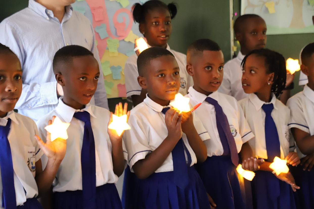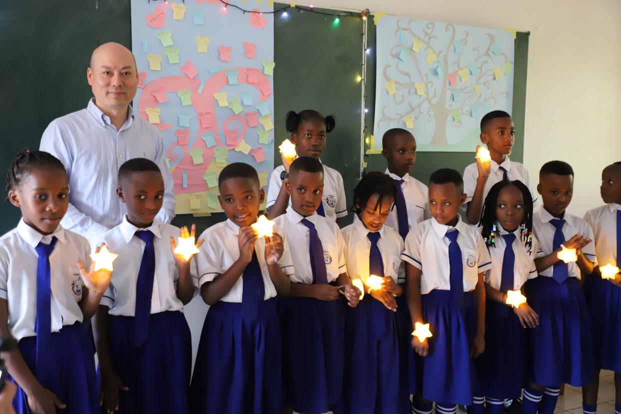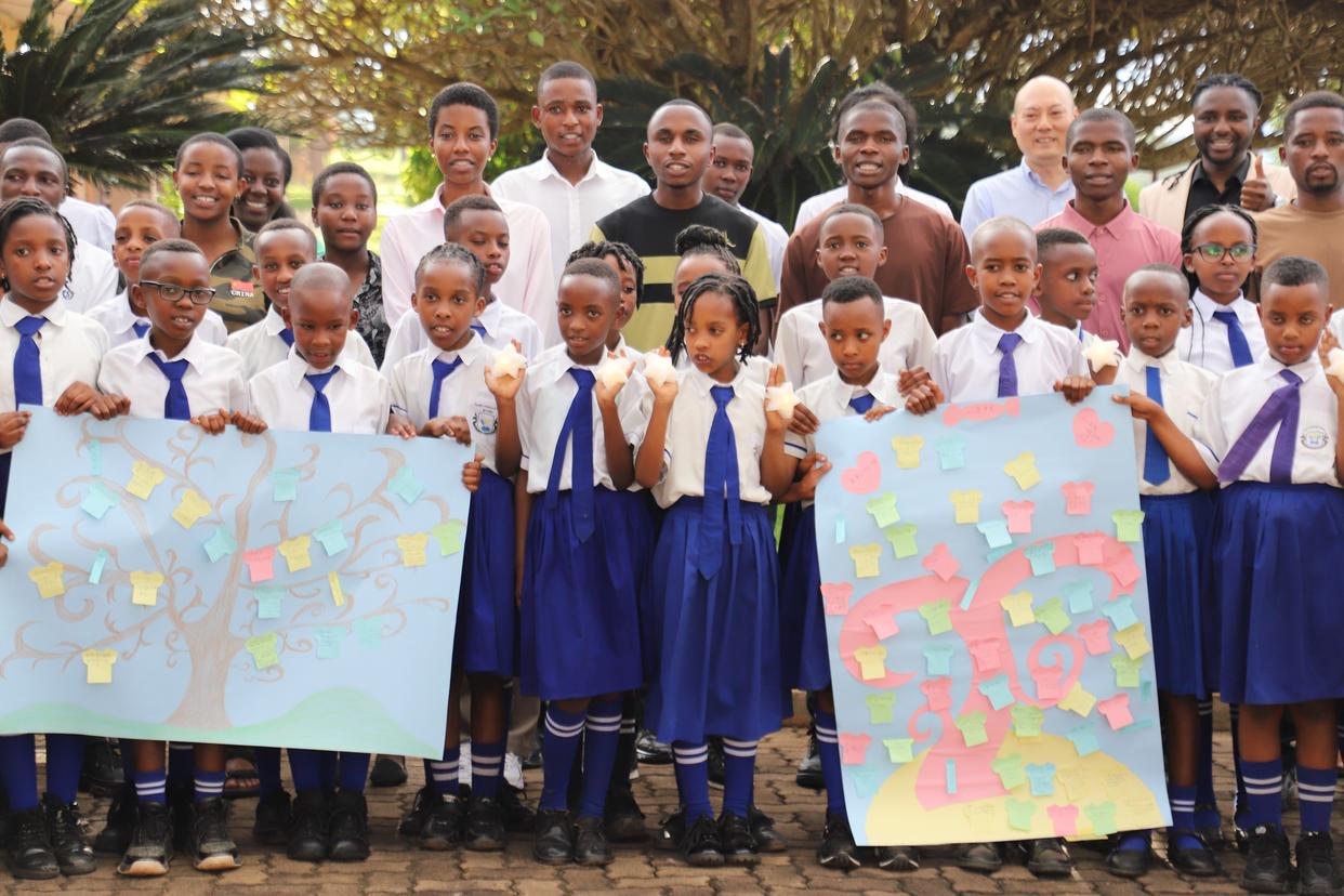 4月19日,在卢旺达首都基加利,当地学生在“国际中文日”文化交流活动上合影。新华社记者 鞠银河 摄