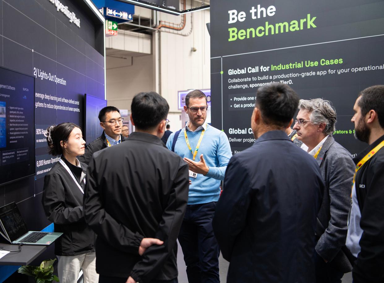 4月21日,人们在德国汉诺威工业博览会中控展台交流。新华社记者 张豪夫 摄