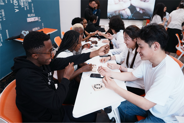 思想的碰撞之外,丰富多彩的文化互动活动成为本次交流的一大亮点。手串DIY现场,中非青年围坐一堂、其乐融融,肯尼亚青年们在志愿者的耐心指导下穿珠引线,认真学习编织技巧,将一颗颗色彩艳丽的彩珠,串成承载着彼此心意与文化印记的手链。“作为本次中非交流活动的志愿者,最大的收获不仅是提升了口语表达能力,更结识了许多来自非洲的朋友,扩展了自己的交际圈,收获了珍贵的跨国友谊。”该校2025级播音与主持艺术专业的戴子蕊表示。