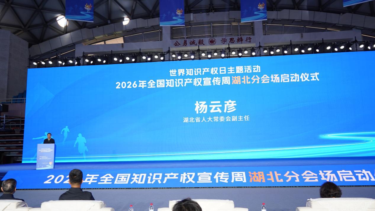 4月22日,世界知识产权日主题活动暨2026年全国知识产权宣传周湖北分会场启动仪式在武汉举办,湖北省人大常委会副主任杨云彦出席并启动湖北分会场,国家知识产权局战略规划司司长梁心新、世界知识产权组织(WIPO)中国办事处主任刘华现场致辞,中国工程院院士徐卫林、湖北省知识产权局局长吴骏出席活动。