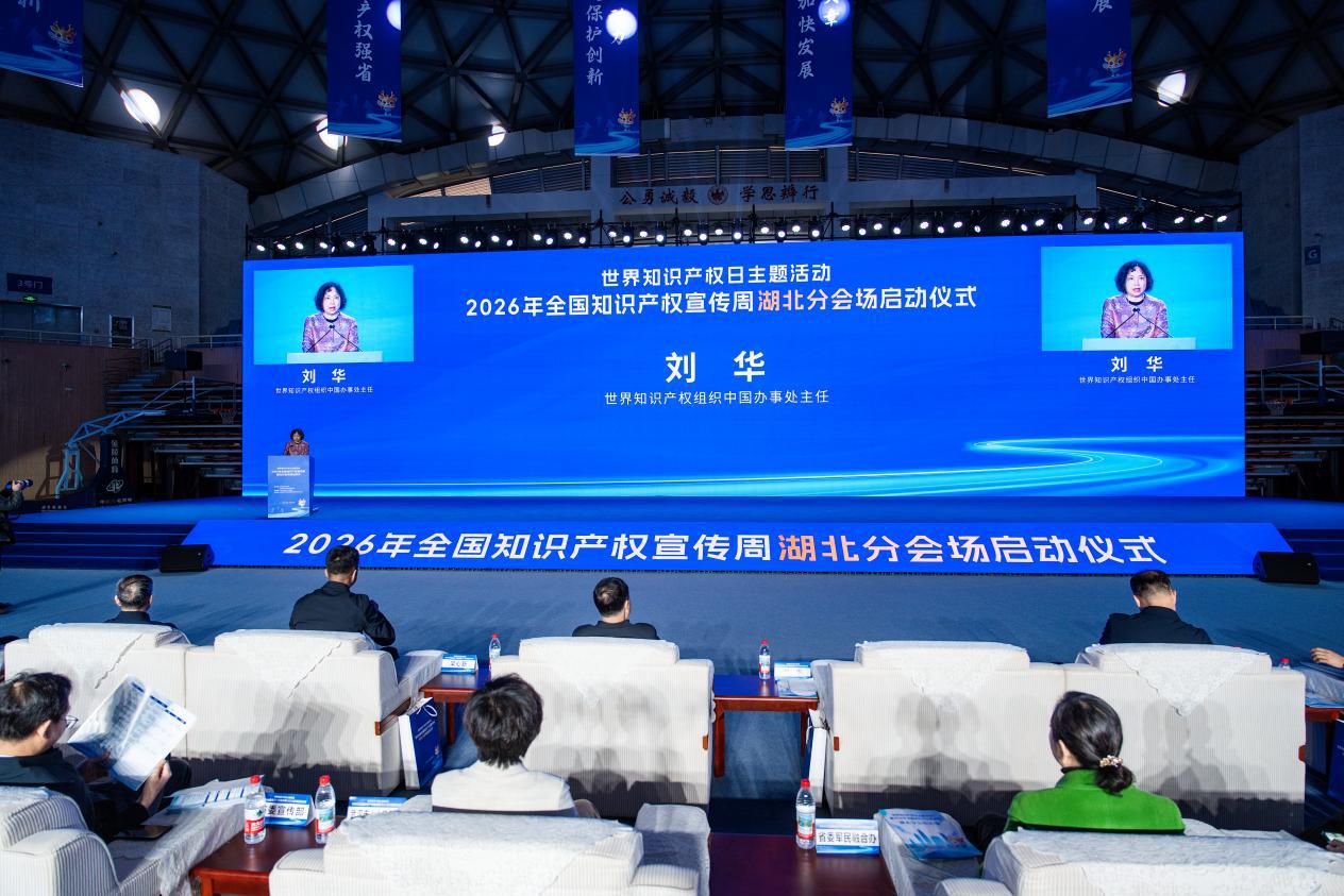 刘华代表世界知识产权组织和邓鸿森总干事,祝贺湖北主题活动的举办。她表示,全球正经历数字创新与深层科学创新的两大浪潮交汇,知识产权制度必须守护人的创造性与主体性。今年世界知识产权日聚焦“知识产权和体育”,探索知识产权如何推动体育世界的创造与创新,以及体育与专利、外观设计、商标、版权等深度融合。湖北创新资源集聚,每万人口高价值发明专利拥有量居中部第一,涌现出李娜、郑钦文、“程菲跳”等世界级体育知识产权。湖北主题活动以机器人演绎武当太极,正是荆楚大地传统与现代交融、技术与艺术共生的最新表达。世界知识产权组织将通过国际申请通道、跨境争议解决、能力建设平台、绿色技术对接、AI治理平台等,全方位支持湖北创新走向世界。