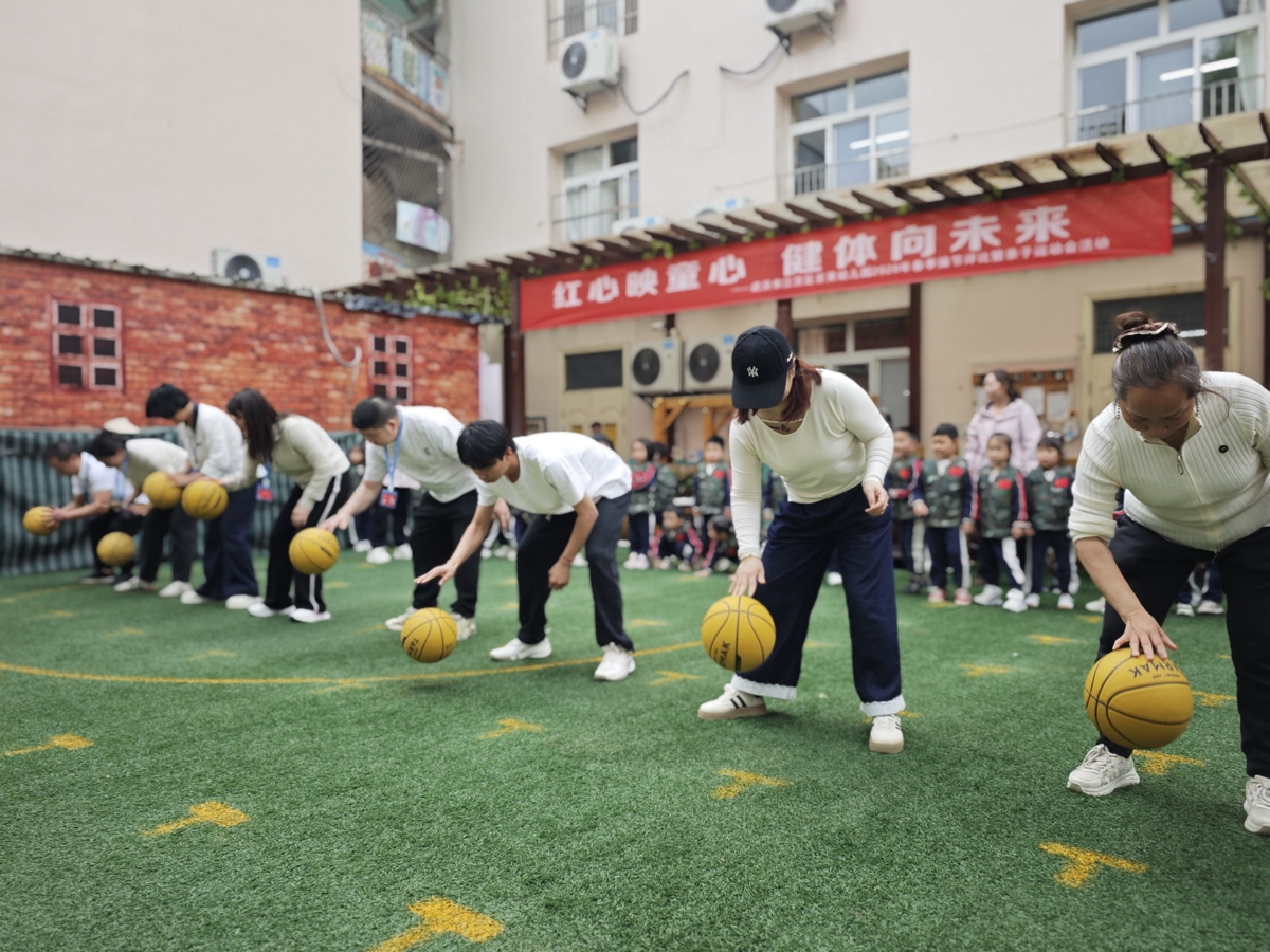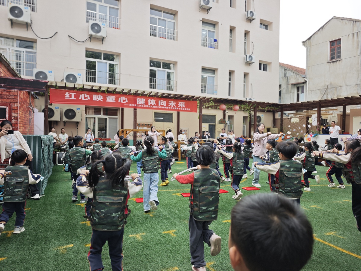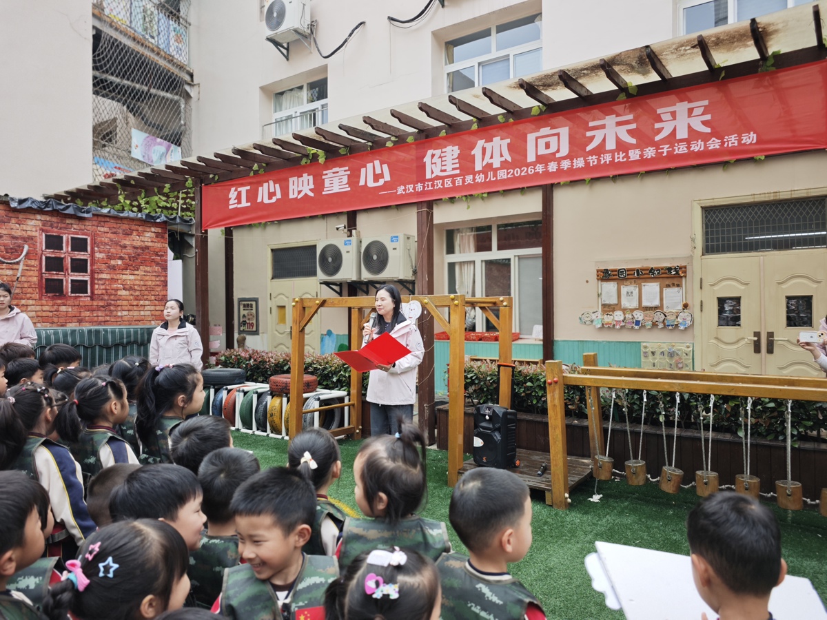 4月24日下午,武汉市江汉区百灵幼儿园举行“红心映童心 健体向未来”春季操节评比暨亲子运动会。活动以春日“生长”为主题,呼应区域“幼享跃动”健体活动“享受运动、强健体魄、快乐成长”的育人导向,200余名幼儿及家长在跃动中感受运动之乐、成长之力。