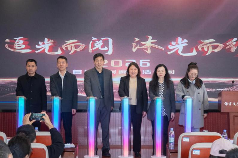4月23日下午,正值我国首个全民阅读活动周,湖北第二师范学院携手武汉东湖新技术开发区、鄂州,以教师教育共同体为纽带,启动“追光而阅 沐光而行”全民阅读活动周系列活动。来自两地教师教育共同体、湖北第二师范学院国家语言文字推广基地工作站的代表及专家学者齐聚,共同点亮“阅读之光”装置,一场由高校引领、三地联动、辐射全省的阅读推广行动正式启航。