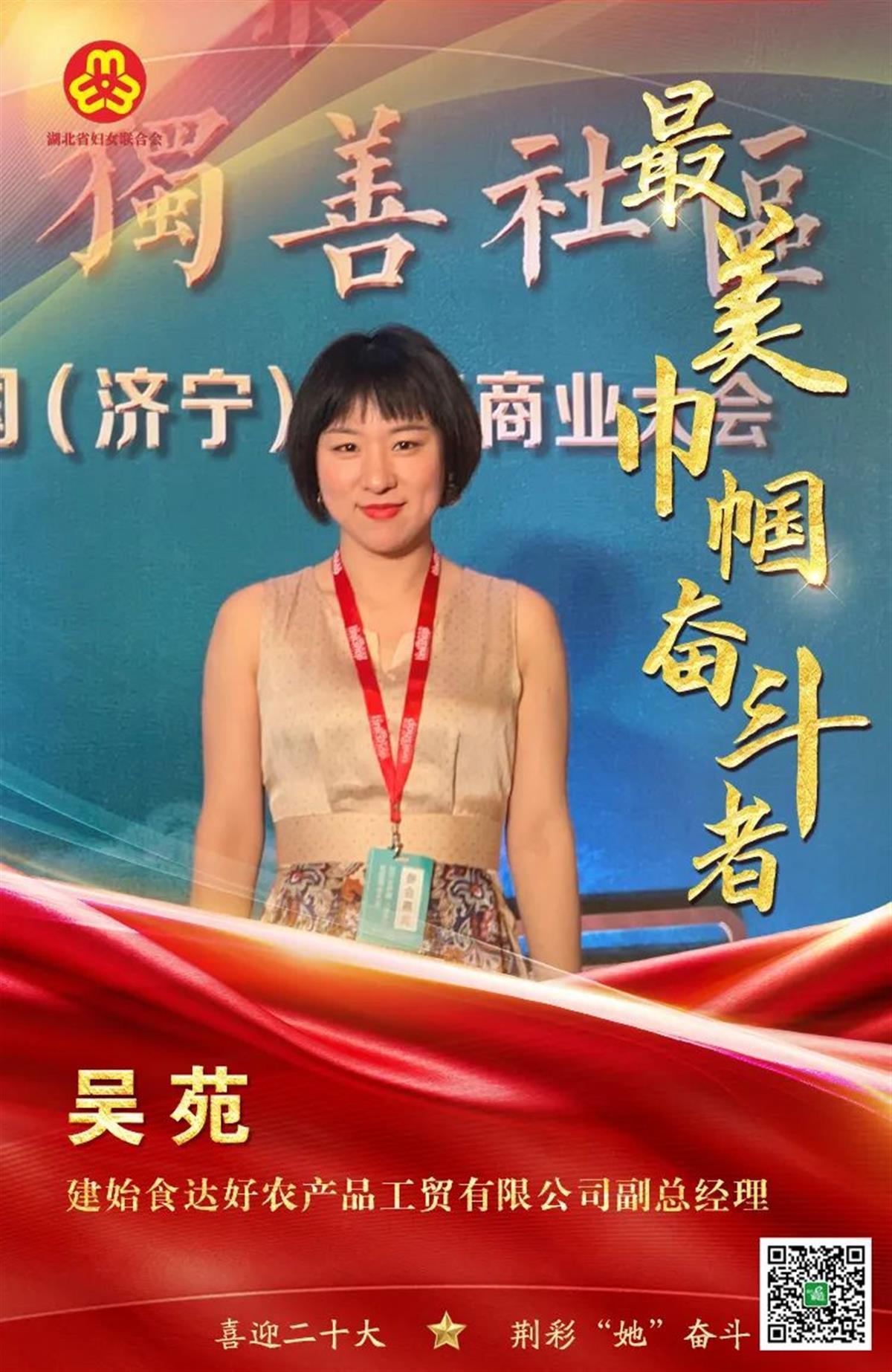 吴苑作为年轻的80后年轻党员代表,一直在自己的岗位上发光发热,虽然离开了体制内成为了一名非公经济组织中的党员,但是不论在工作中,还是生活中,她都树立了一个党员和负责任的企业家的责任和担当,2019年12月,被评为“恩施州劳动模范”;2021年6月,被恩施州委表彰为“恩施州优秀共产党员”。