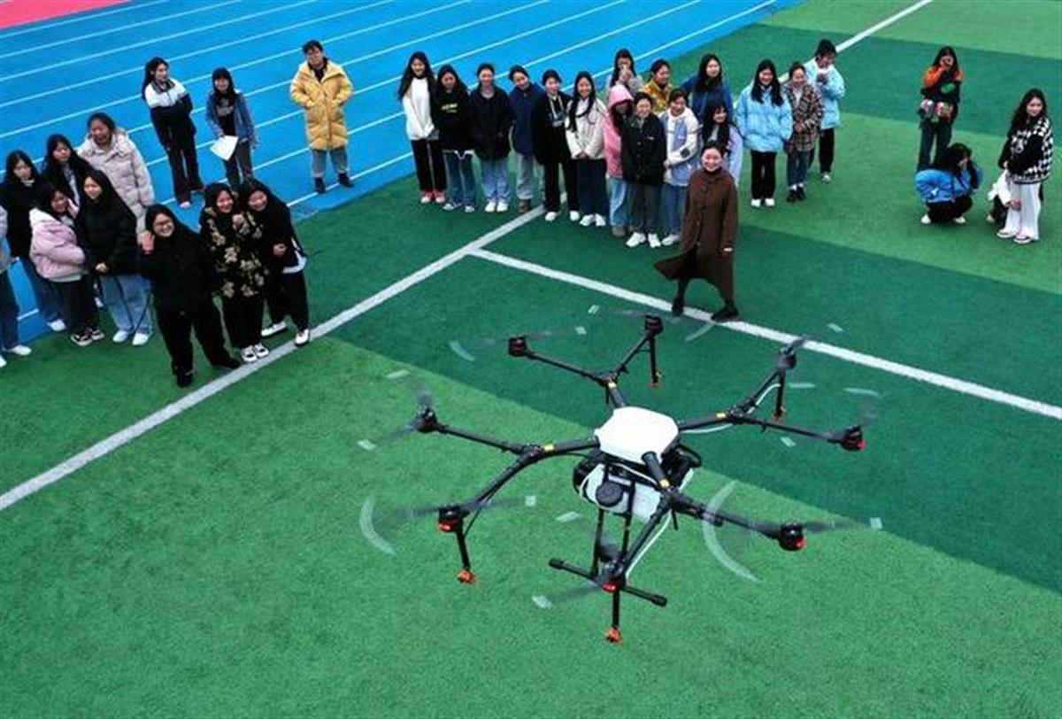 宣恩县中等职业技术学校学生观摩植保无人机飞行操作(图片来源:新华社)