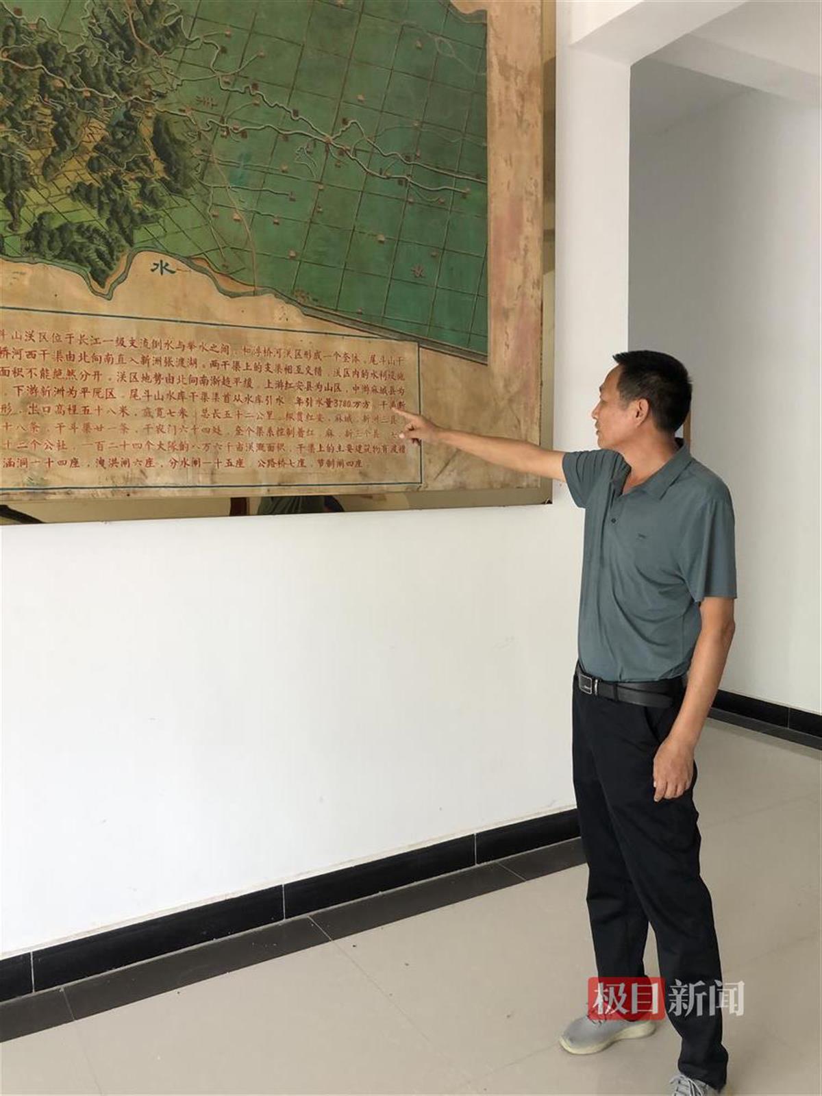 尾斗山水库管理处副处长秦和太说,这个“新”字指的是武汉市新洲区,1960年代的新洲县,属黄冈市管辖。尾斗山水库是从1959年开始倾新洲、麻城、红安三县之力,历时3年,到1961年才建成蓄水的。从上世纪60年代到80年代,这座大坝又经过了多次加高培厚,水库的总库容才达到今天这样的规模。