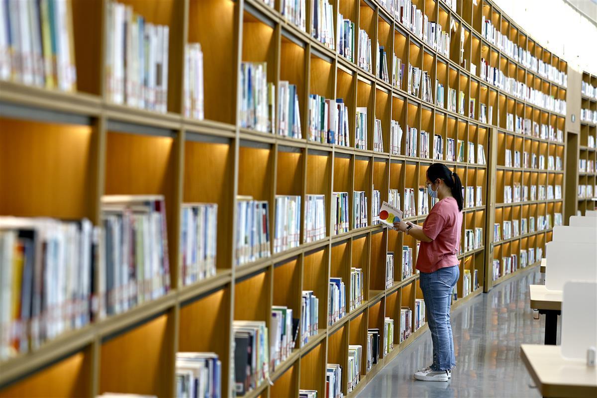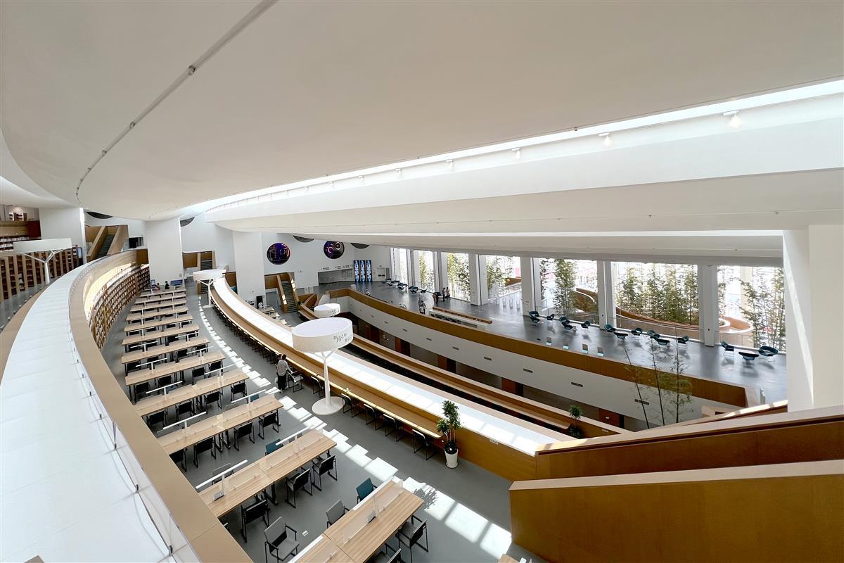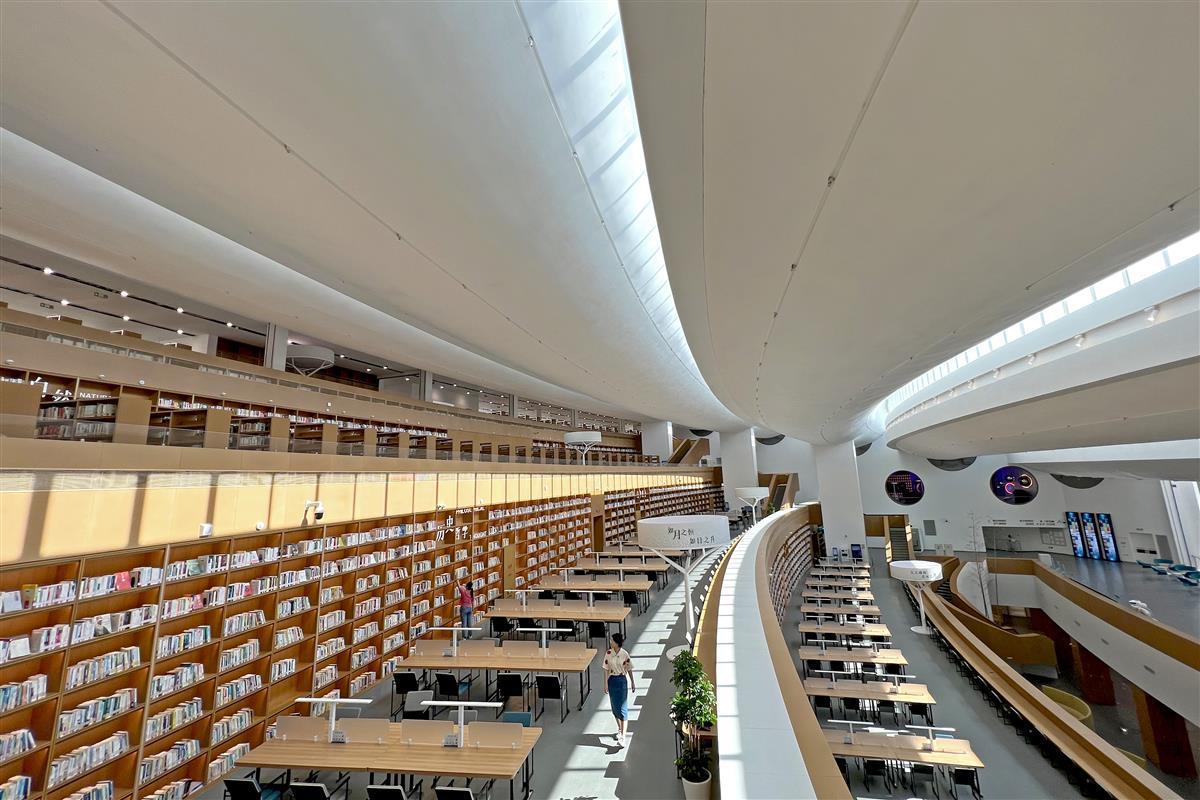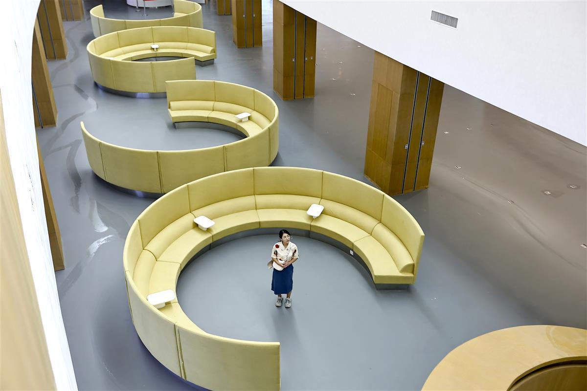 2022年9月27日,位于武汉市临空港经济开发区(东西湖区)文化中心的市民阅读中心各项准备就绪,28日将与市民见面。据介绍,该市民阅读中心由东西湖区图书馆和“文化策展区”组成,总共五层,共计2.8万平方米,目前藏书量45万册,总藏书量可达100万册,按国家一级图书馆标准建造,包含了竹林阅览区、策展区、借阅区、主题区、公共活动区等多个区域。(湖北日报全媒记者倪娜通讯员晏君摄)