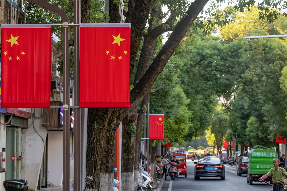 随着国庆佳节脚步临近,在中国第一将军县——湖北省红安县大街小巷,国旗迎风飘扬。这座红色小城的人们,正用满城的中国红表达对新中国最真挚的祝福。