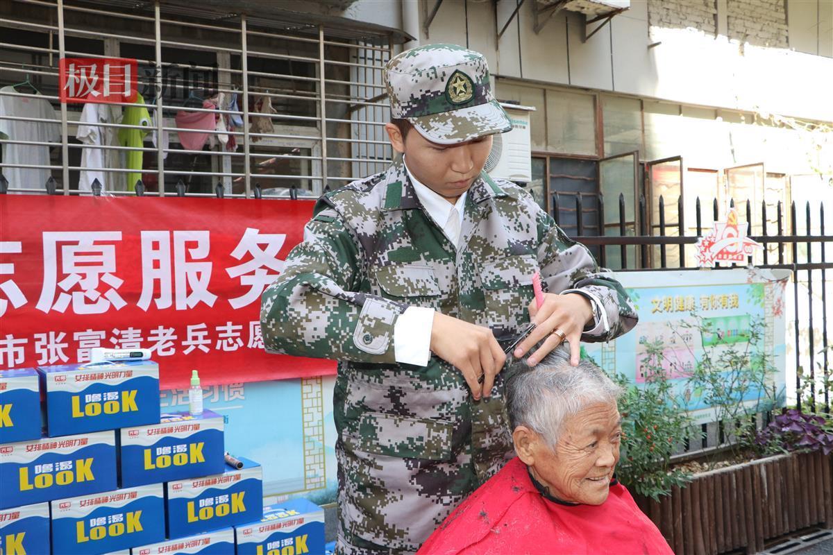 活动现场,退役军人帮助敬老院打扫卫生、清理杂物、修剪绿植,院区环境焕然一新。志愿者们一边为老人理发、洗发、修剪指甲,一边陪老人聊天。“这个水温可以吗?”“请放心,我不会把您的衣服打湿的。”“您的头发剪短后看起来更精神了!”志愿者们亲切的话语如午后和煦的阳光让老人们倍感温暖。
