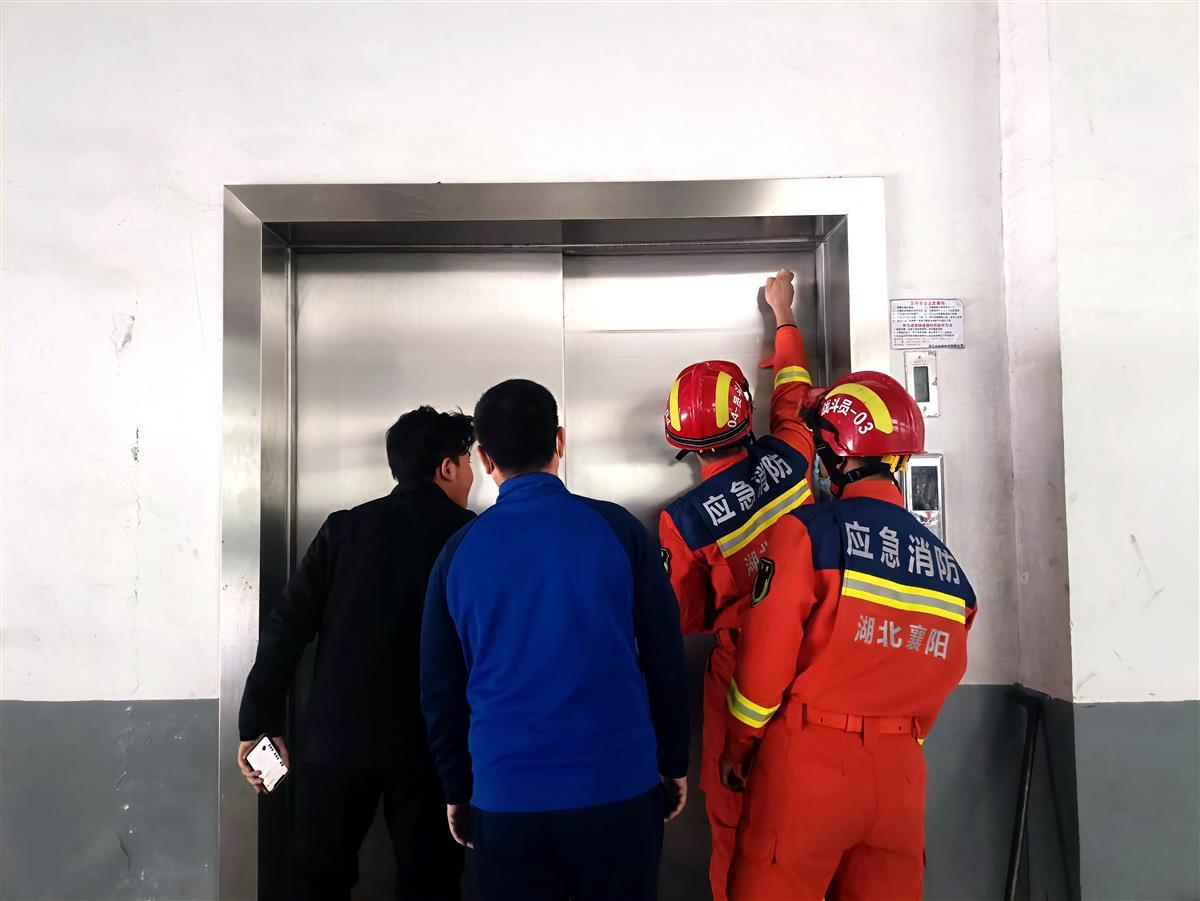“您好,119吗?我和我学生被困在电梯里了!帮忙救助一下!”10月9日中午12时,襄阳市襄城区尹集乡襄阳汽车职业技术学院一实训楼电梯突发故障,导致一名老师和一名学生被困,老师焦急地拨打119求助。襄阳市襄城大队琵琶山路消防救援站接到报警后,立即赶往现场,到场后发现电梯停在二楼半,师生两人在电梯内均保持意识清醒。