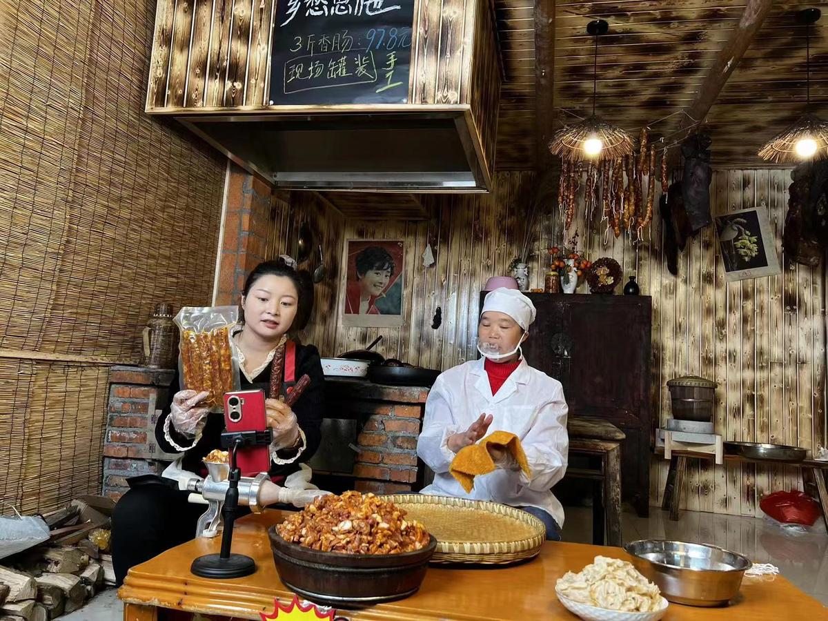 该直播间每天下午4时20分准时开播,直播间内装饰古色古香,葫芦水瓢、土盐罐、手磨等厨房老物件齐全,极具特色,主播时而现场教授、示范腊肉传统加工工艺,时而详细讲解腊肉、香肠搭配其它食材的做法等等。截至目前,该直播间已带动农民增收30余万元,实实在在帮助农民增收的同时,又宣传了巴东特色农产品,提升了当地农产品知名度,拓宽了农产品销路,走出了一条直播助农的乡村振兴共富路。
