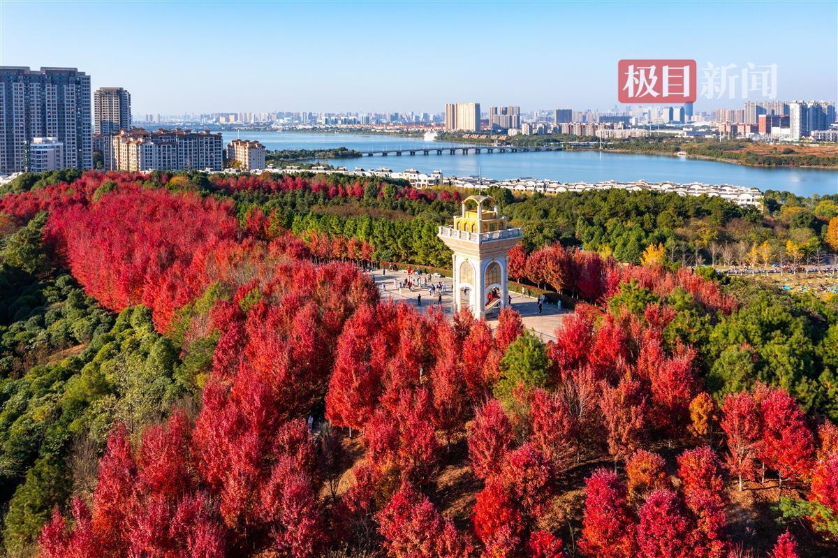 武汉藏龙岛国家湿地公园红枫似火