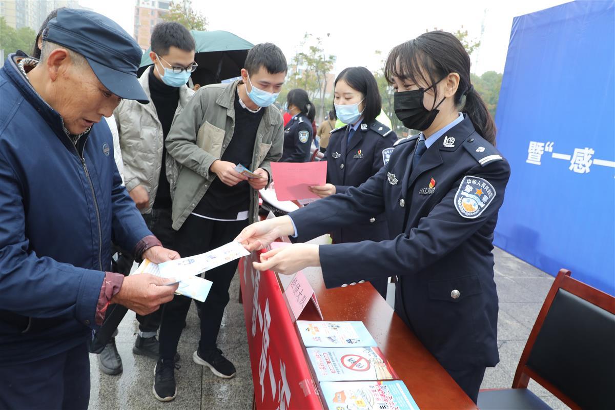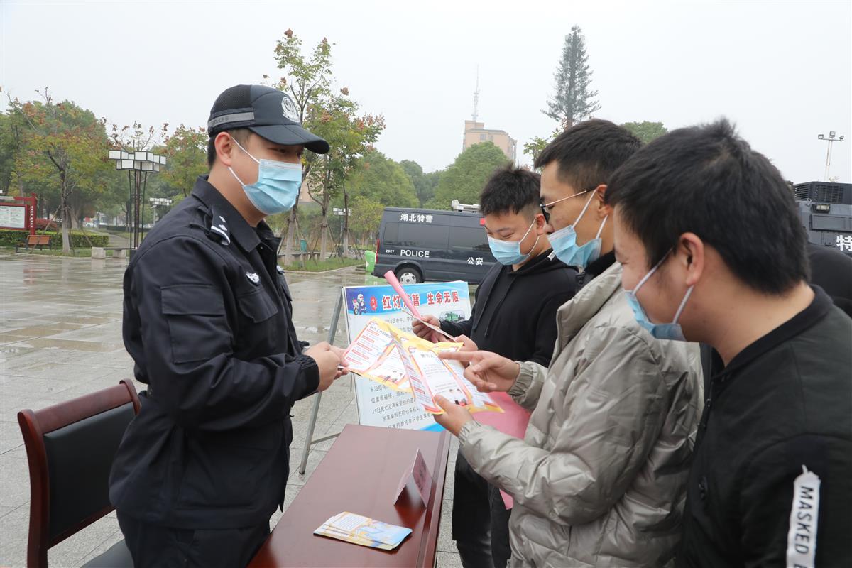 11月18日上午,江陵县公安局通过设置宣传咨询台,邀请基层派出所、刑侦、治安、禁毒、交警等警种的民警现场接受群众的咨询,耐心解答群众的疑惑和问题,并向群众宣讲反诈、禁毒、交通安全等常识。
