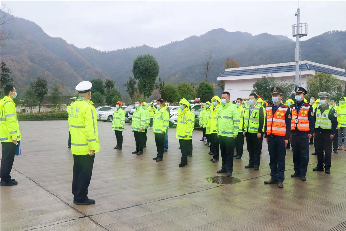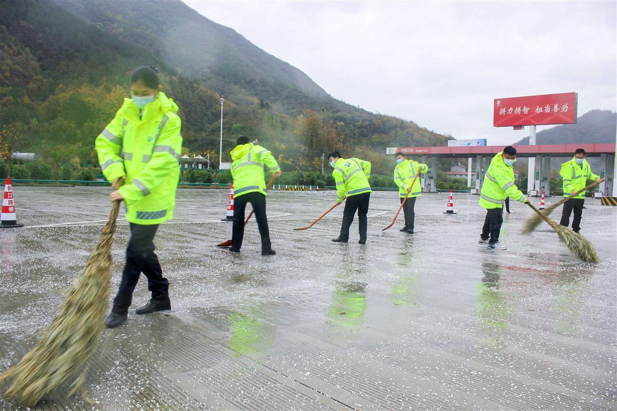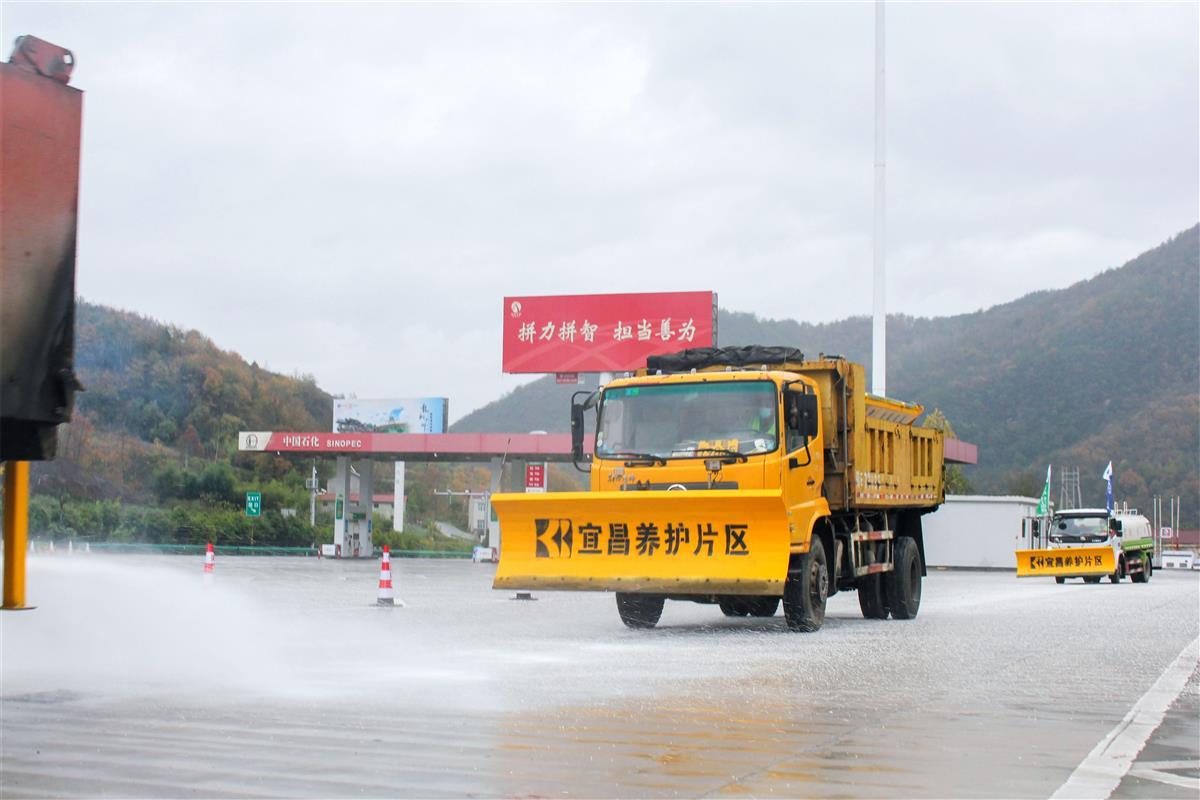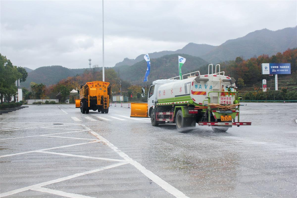 12月1日,在G59呼北高速保康段店垭服务区,“警路企”7部门正在联合开展冬季防冻防滑应急演练。
