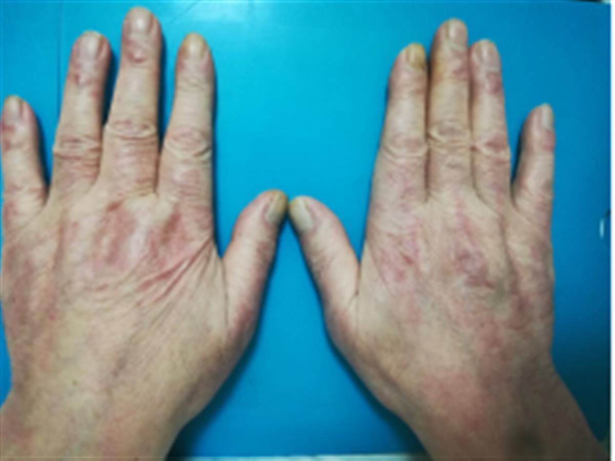 近几个月来,王女士总是感觉全身肌肉酸痛、无力,动不动就感到疲乏。此外,她的脖子和手还出现了红红的皮疹。刚开始,她以为是自己没休息好、感冒了。后来,她的症状越来越重,上楼费力、下蹲后站起困难,并出现呼吸费力、气喘、咳嗽等症状,家人这才觉得不对劲,赶紧将她送到武汉市第一医院神经内科就医,排除新冠、完善相关检查后,王女士被诊断为“特发性炎性肌病”。
