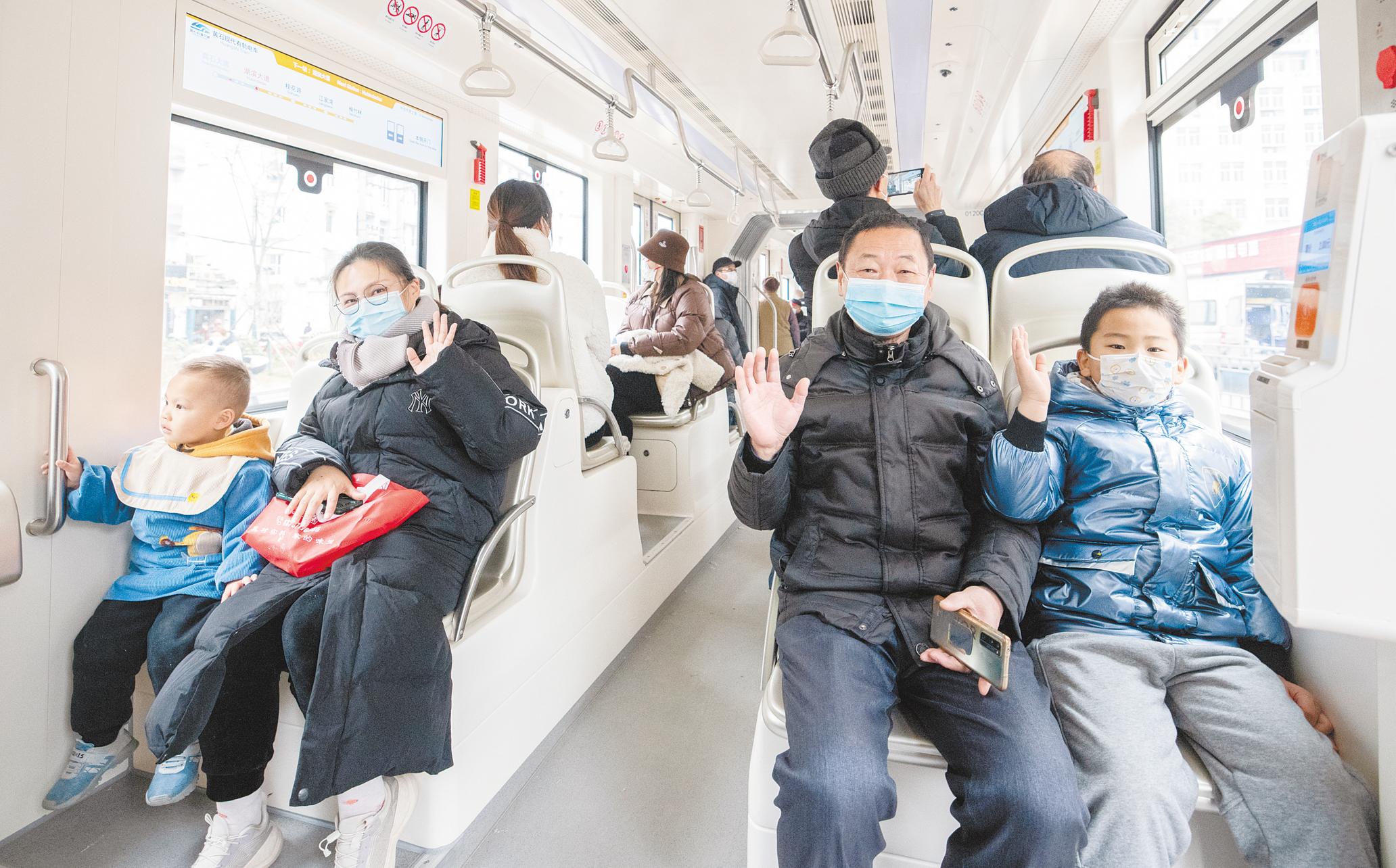上图:12月28日,不少市民尝鲜黄石现代有轨电车。