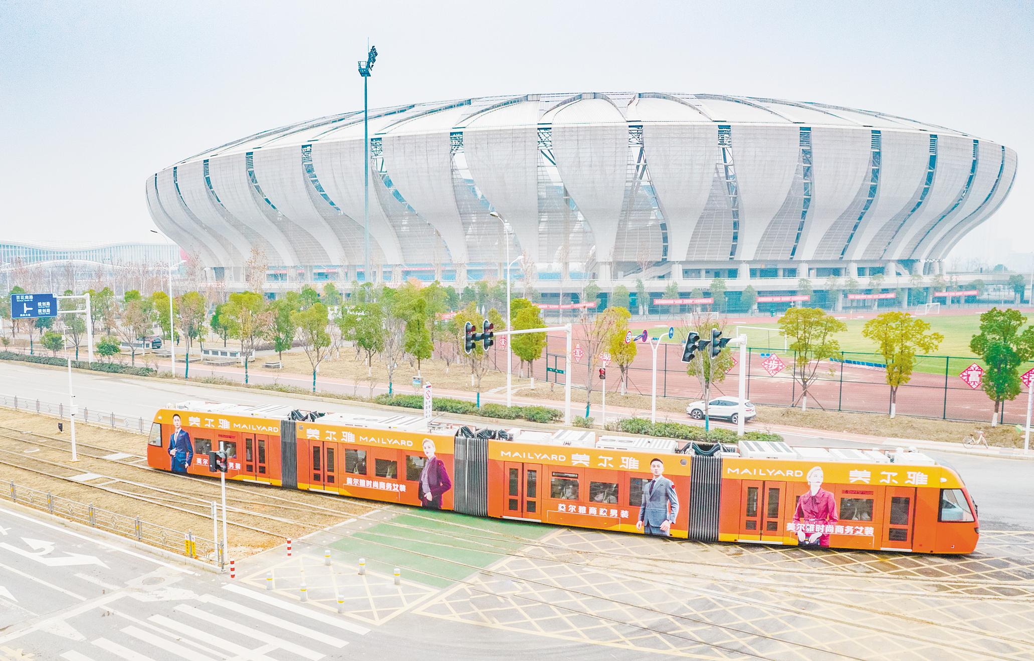 左图:12月28日,一辆现代有轨电车从黄石奥体大道驶过。 当日,黄石现代有轨电车一期项目正式建成通车,黄石成为全省第二座拥有城市轨道交通的城市。