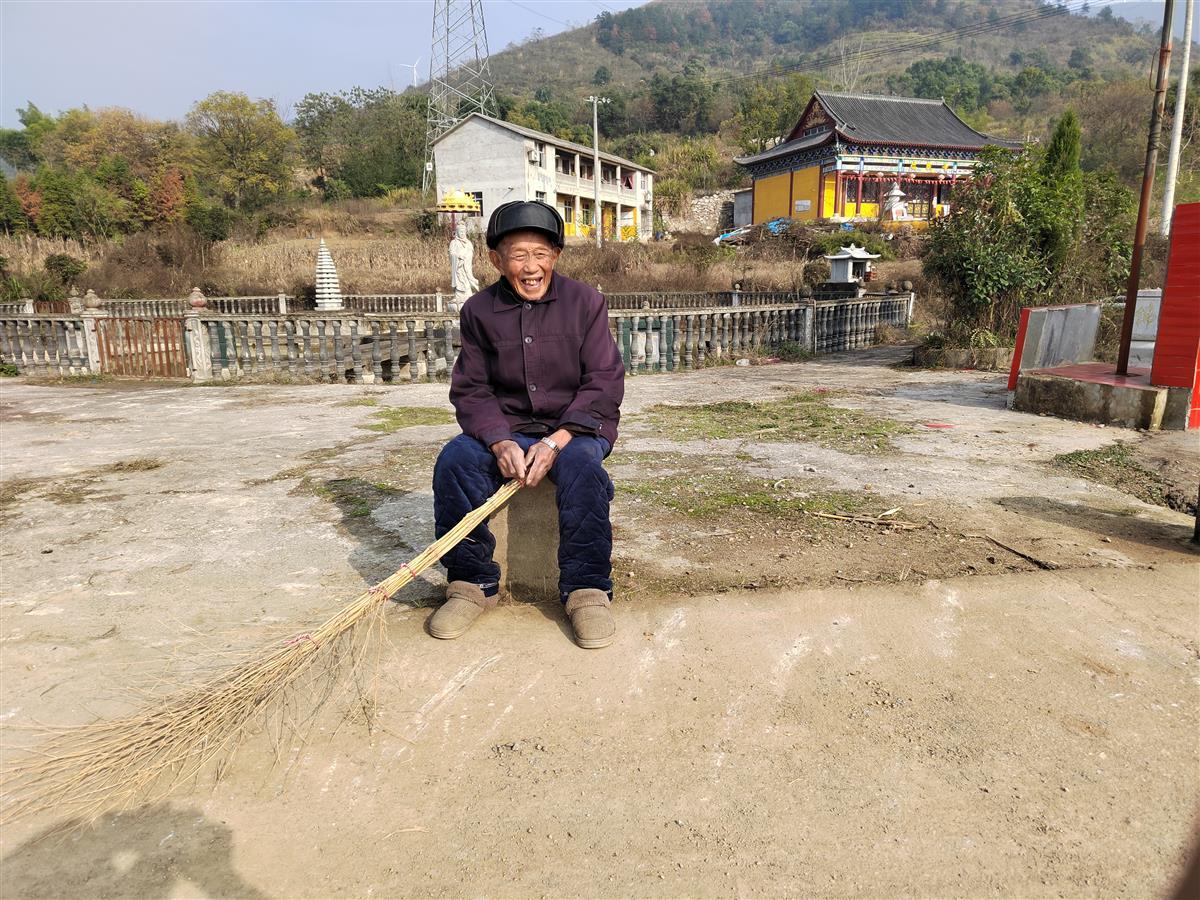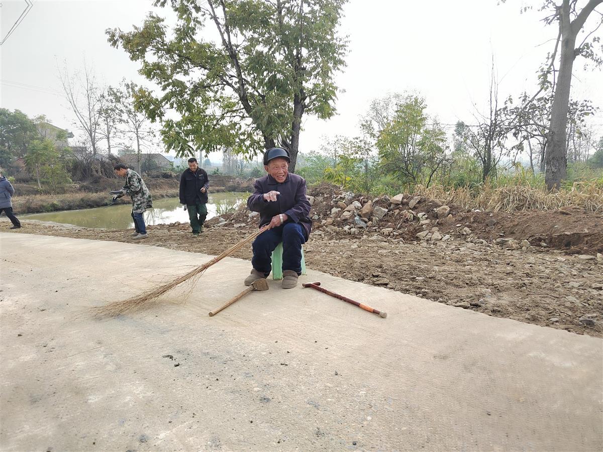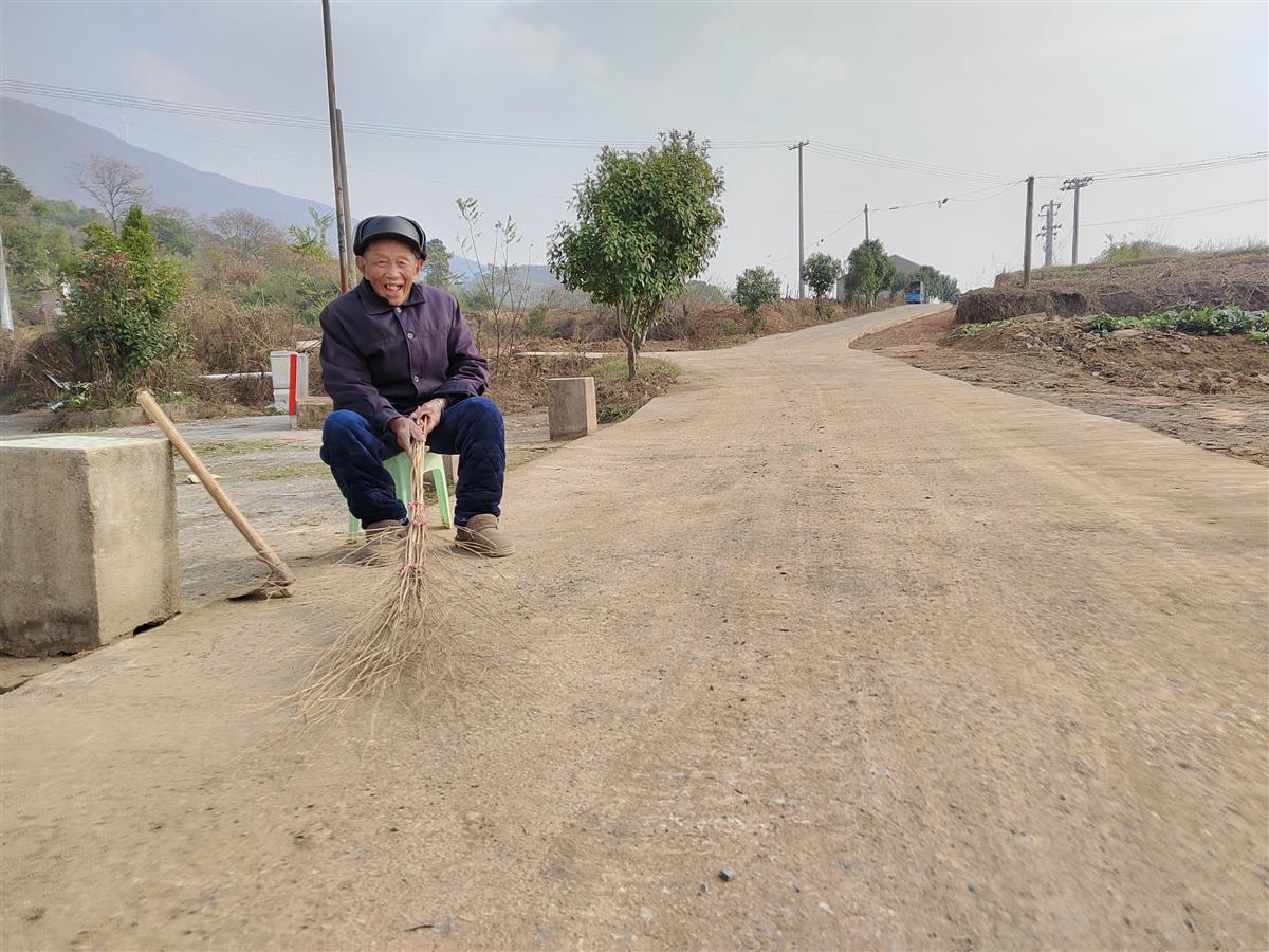 早在2022年12月9日,极目新闻记者在该村采访时,还看到李丹桂老大爷背影佝偻,步履蹒跚地拿着竹扫帚,认真清扫大屋湾至新屋组的村道上垃圾和灰尘,并用随身携带的小锄头,一锄一锄地挖除粘在路面上的黄泥块和长到路边上的杂草。