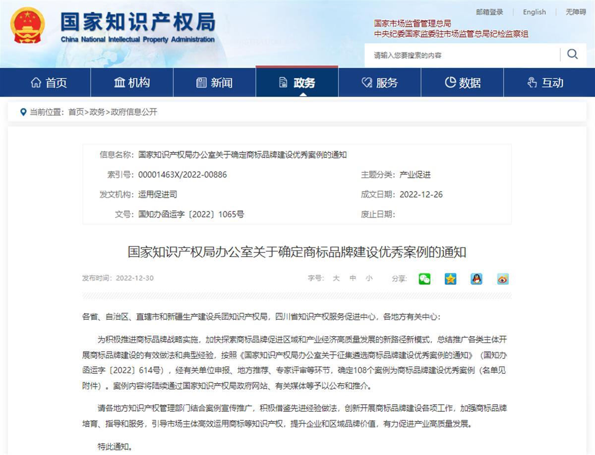 据了解,国家知识产权局下一步将通过全国性宣传、展示、交流活动及主流媒体等渠道对优秀案例进行公开发布、重点宣传,案例成果将作为地方商标品牌建设评价、监测、分析的重要依据。