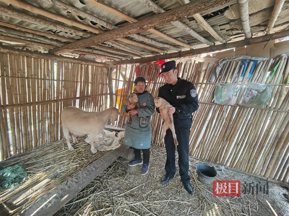 “没想到,丢了一只羊找回了三只,我的心里真是‘美羊羊’了!”近日,在湖北竹山县大庙乡鲍家河村,村民李大娘见到自家丢失的一只羊不但被民警找到,还带回两只小羊时,高兴极了,喜滋滋地向民警致谢。