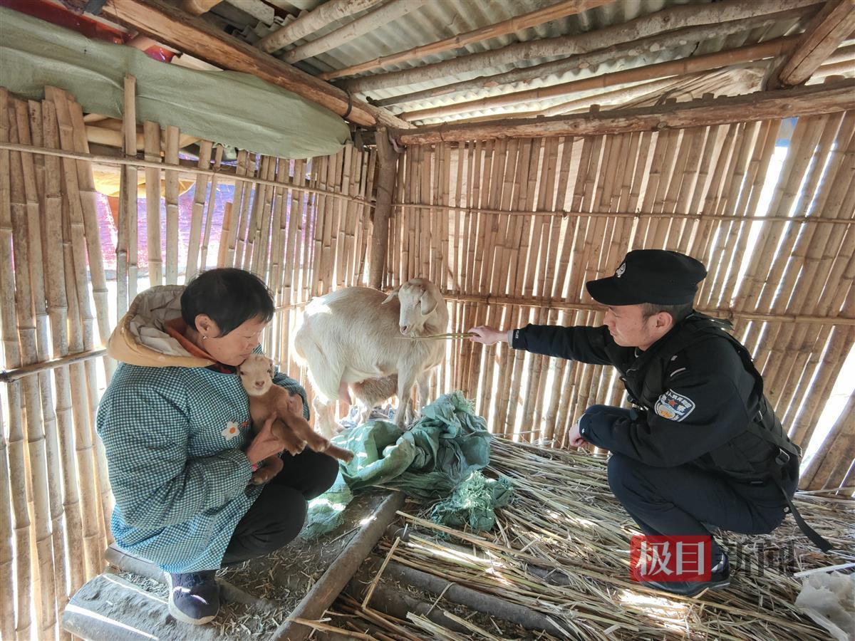 民警连忙将小羊抱入怀里,牵着山羊回到李大娘家中。见到自家的母羊被找回,还带回了两只小羊,李大娘连声向民警致谢。